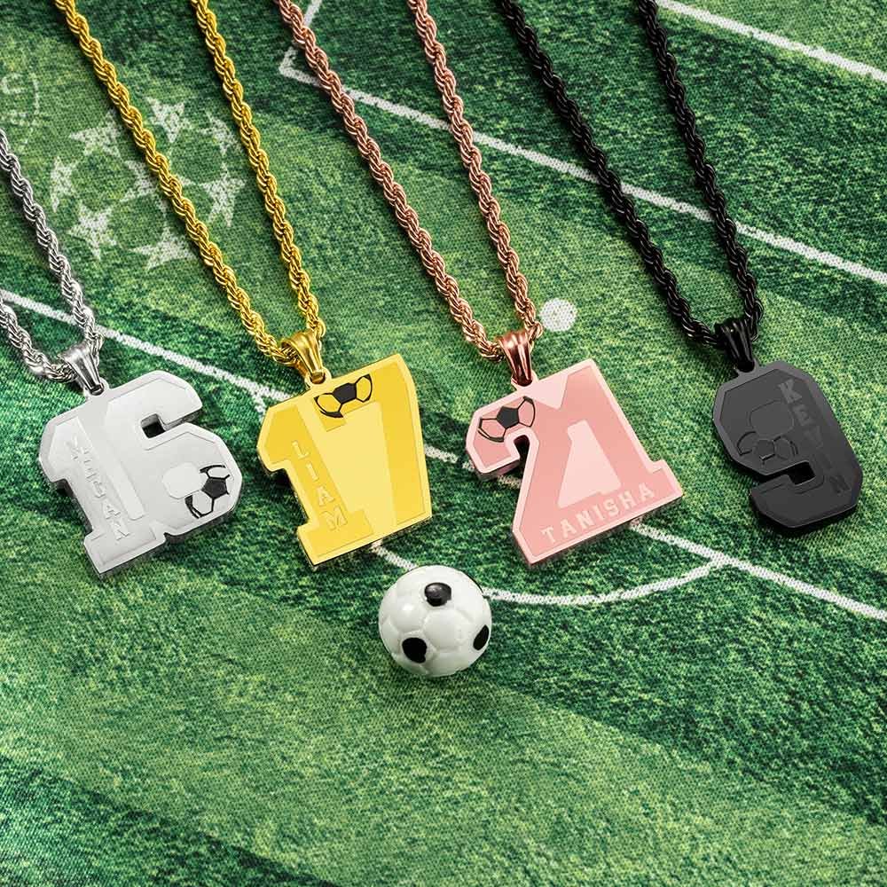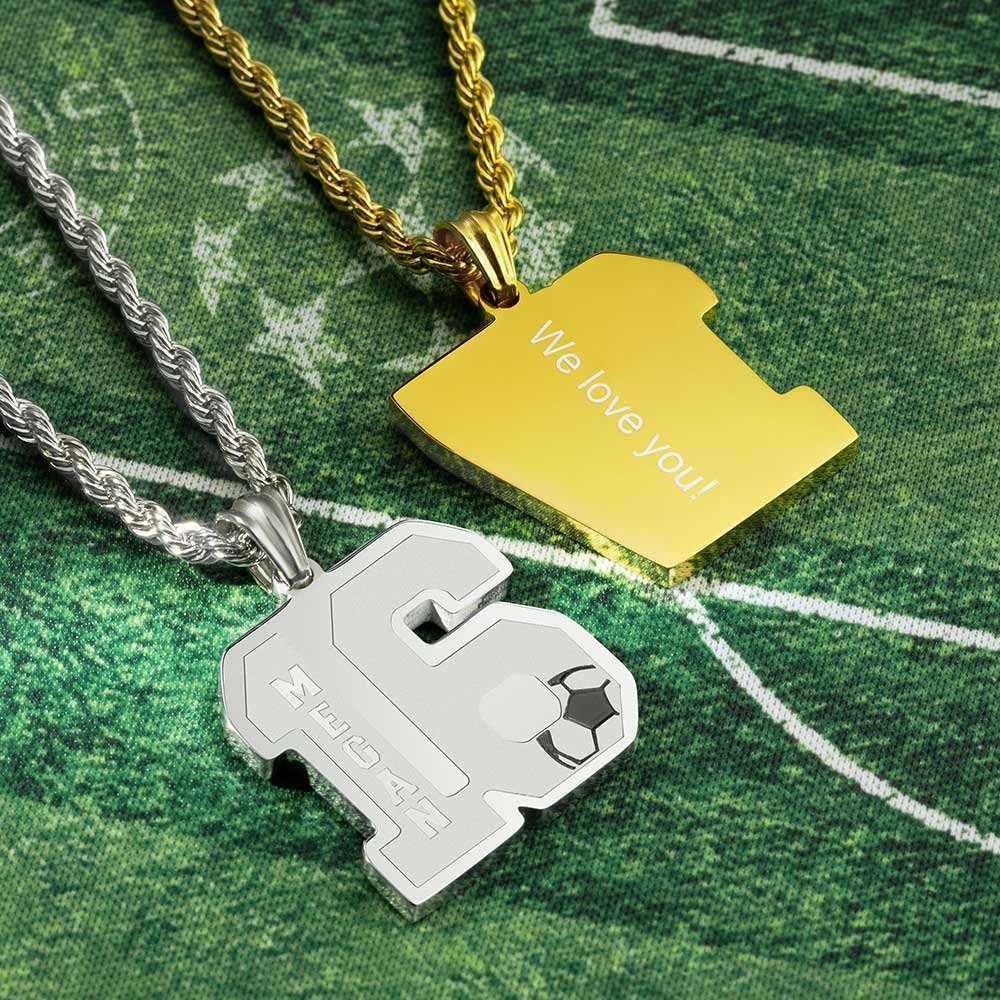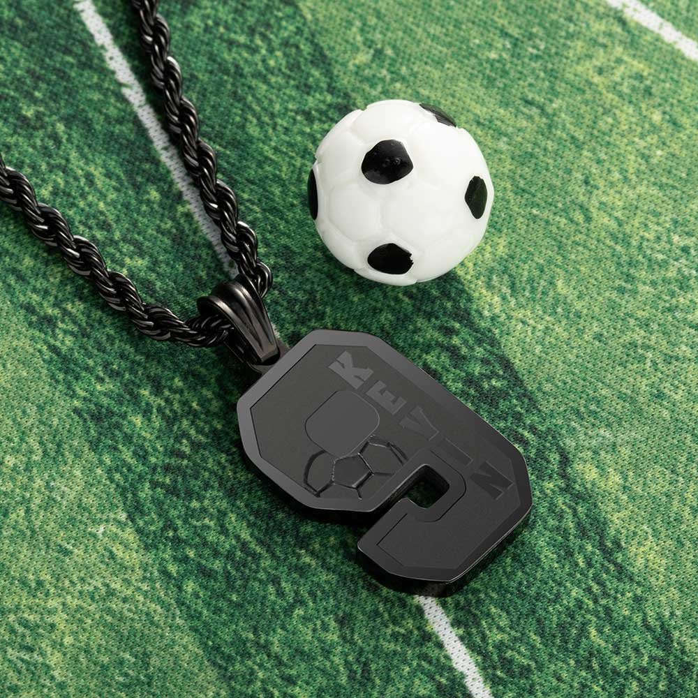 Gemaakt van roestvrij staal, deze ketting is veilig voor de gevoelige huid en zeer vriendelijk voor de huid, geen allergie, geen roest, geen vervaging en kan de hele dag gedragen worden. • Aanpasbaar: u kunt niet alleen 1-2 nummers aanpassen, maar u kunt ook de naam op het nummer aanpassen. En elke boodschap kan op de hanger worden gegraveerd om de tijden van glorie en passie te herinneren! •Exclusief cadeau: deze voetbalketting is zeer gedenkwaardig en geschikt als verjaardags-, afstudeer-, kerst- of nieuwjaarscadeau voor je favoriete voetballer of hun grootste fans om je heen, geweldig voor hem, zonen/dochters, zussen/broers, beste vrienden, neef en sportteamgenoten, etc. OPMERKING: de positie van de naam wordt enigszins aangepast aan de cijfers.