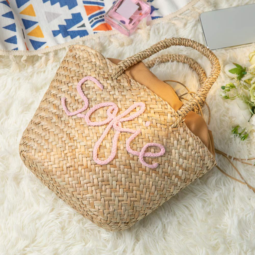 Dit is een populaire zomer stro geweven handtas, u kunt de namen van de bruidsmeisjes erop aanpassen, en een verscheidenheid aan letterkleuren zijn beschikbaar voor u om te kiezen. Het is een draagbaar, duurzaam en elegant cadeau voor bruidsmeisjes.