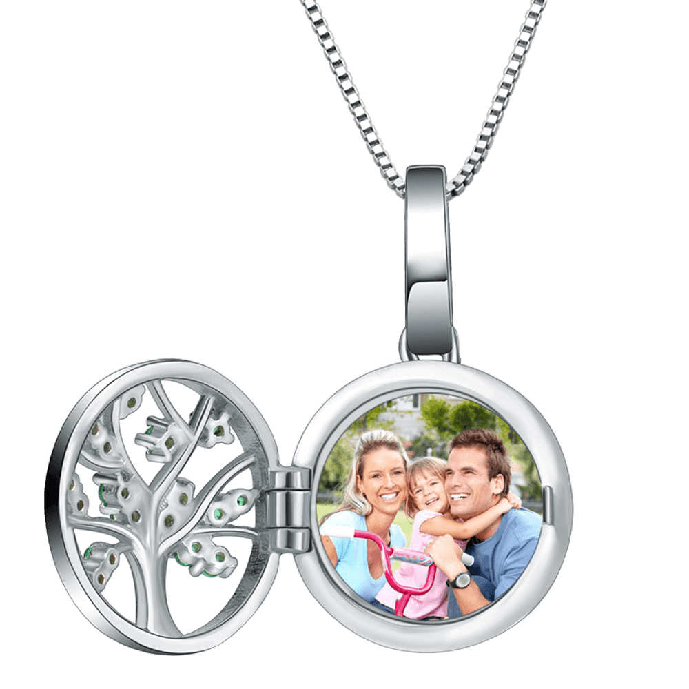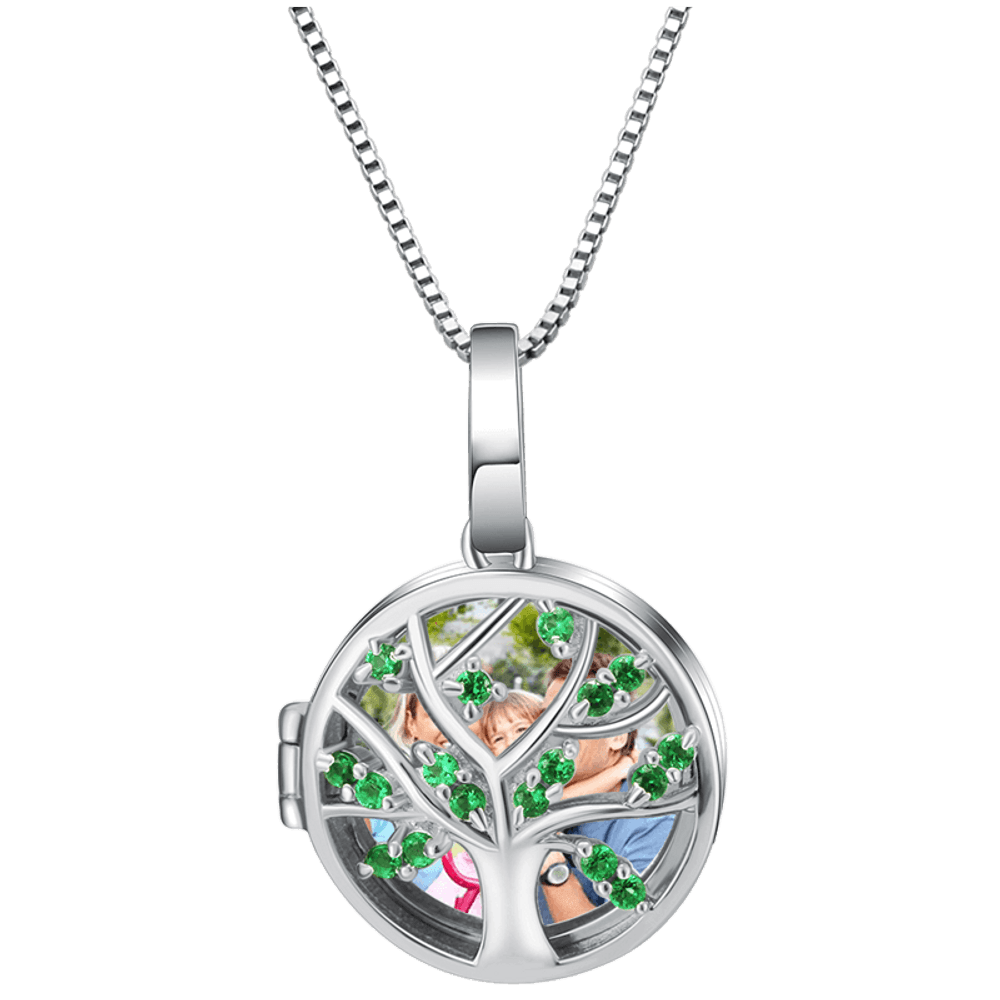 •Het fotomedaillon van Callie is een klassiek ontwerp dat al jaren populair is. Geïnspireerd door zakhorloge. Mensen halen het medaillon uit hun zak om de bijzondere en dierbaren te herdenken. •Deze ketting is ingebed in een prachtige levensboom versierd met groene glanzende diamant. U kunt naar wens een gravure van maximaal 20 tekens op de achterkant maken. Het medaillon is gemaakt van 925 sterling zilver. Onze kunstenaar bewerkt elke hanger één voor één met de hoogst mogelijke precisie en detail. •Dit unieke en oprechte product is verpakt in een mooie doos en klaar om cadeau te doen.