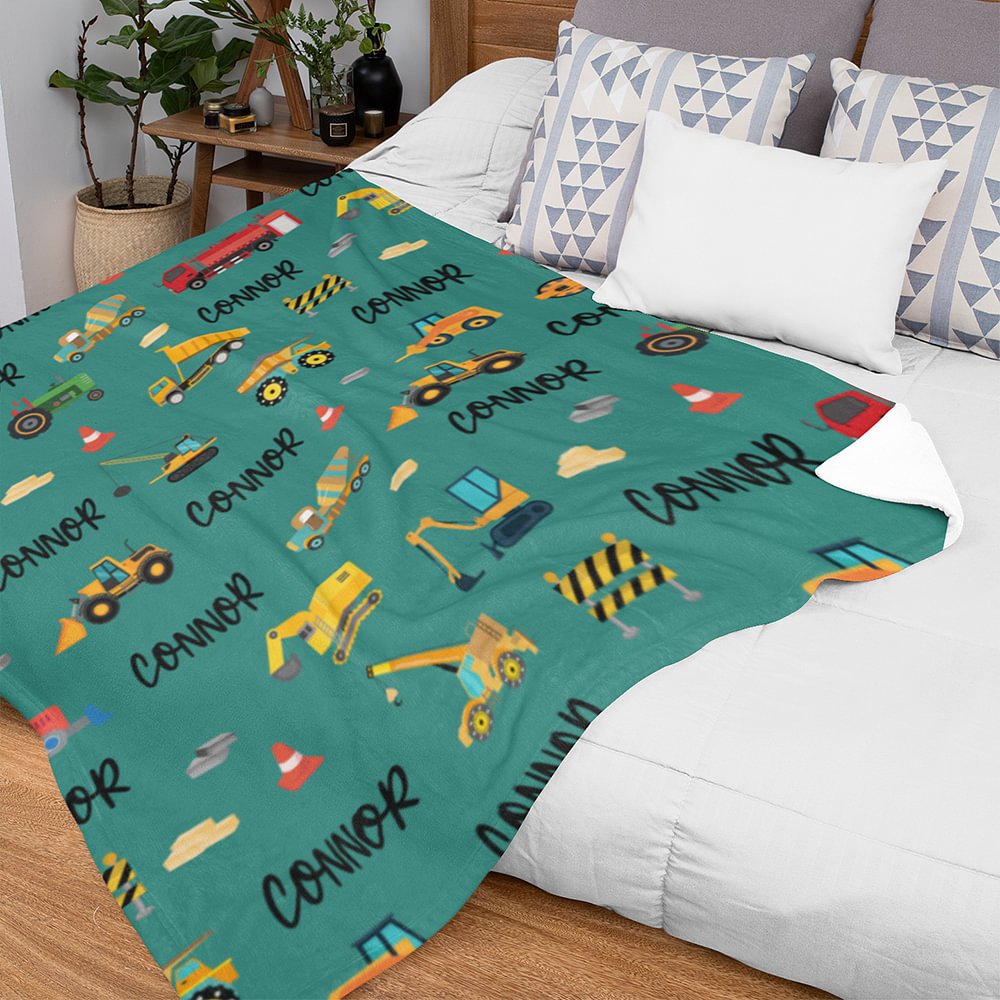 Onze bouwdeken print vrachtwagens graafmachines, kranen en graafmachines, deze coole cartoon Truck zal uw kinderen aantrekken om te spelen, deze deken helpt niet alleen om de cognitieve vaardigheden van kinderen te verbeteren, maar voegt ook toe aan het plezier van leren.