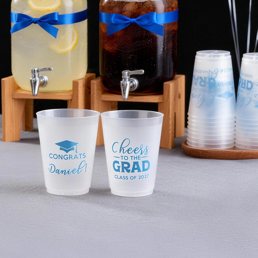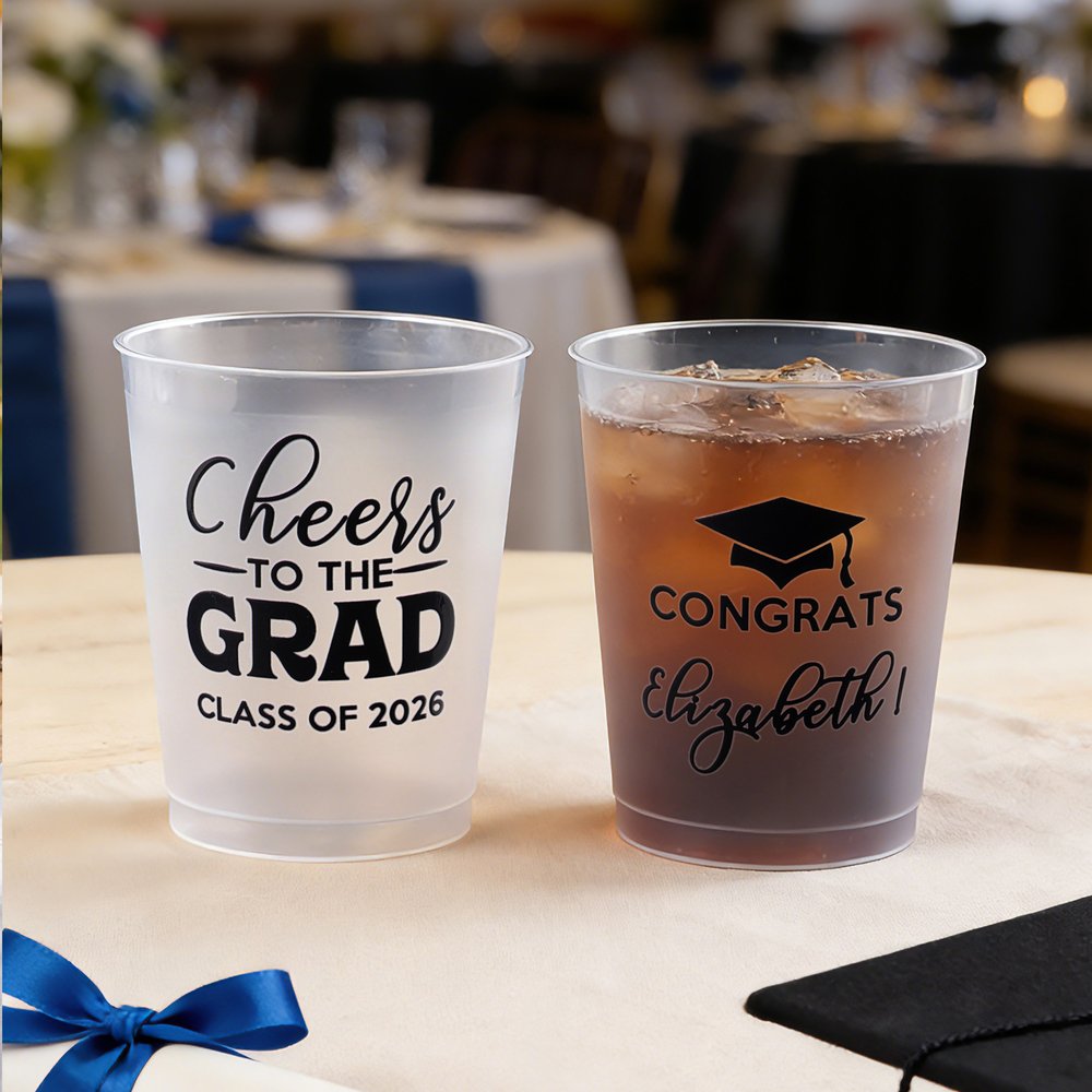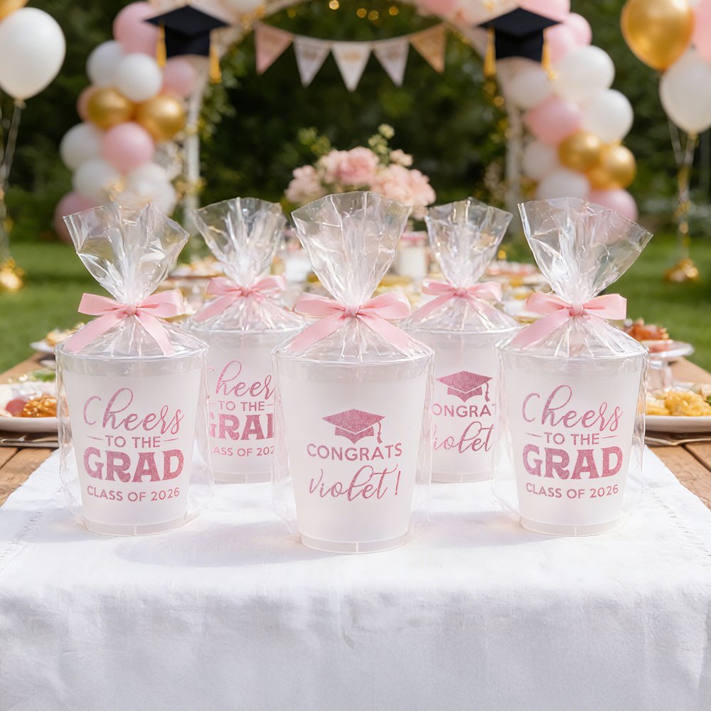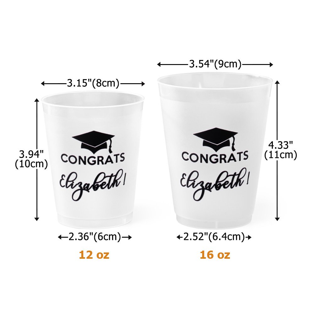 Deze matte afstudeerbeker heeft een doorschijnende matte afwerking voor een elegante, ingetogen look. Versierd met "Cheers to the Grad" tekst en afstudeerpet elementen, plus aanpasbare naam en afstudeerjaar - waardoor elke beker een uniek aandenken wordt. Verkrijgbaar in verschillende kleuren en twee maten, perfect voor verschillende feeststijlen.