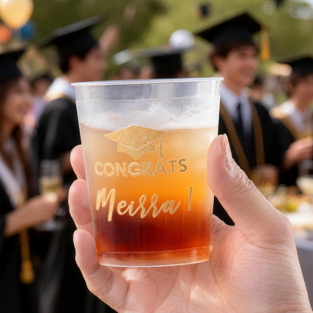 Gemaakt van plastic, BPA-vrij, veilig en geurloos. Duurzaam en schokbestendig, dus bestand tegen krassen en intensief gebruik op feestjes. Gedrukte afbeeldingen blijven levendig en vervagen of vervellen niet na verloop van tijd. Combineert stijl met betrouwbaarheid voor een zorgeloos afstudeerfeest.