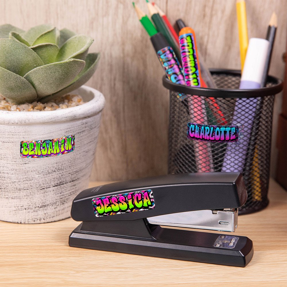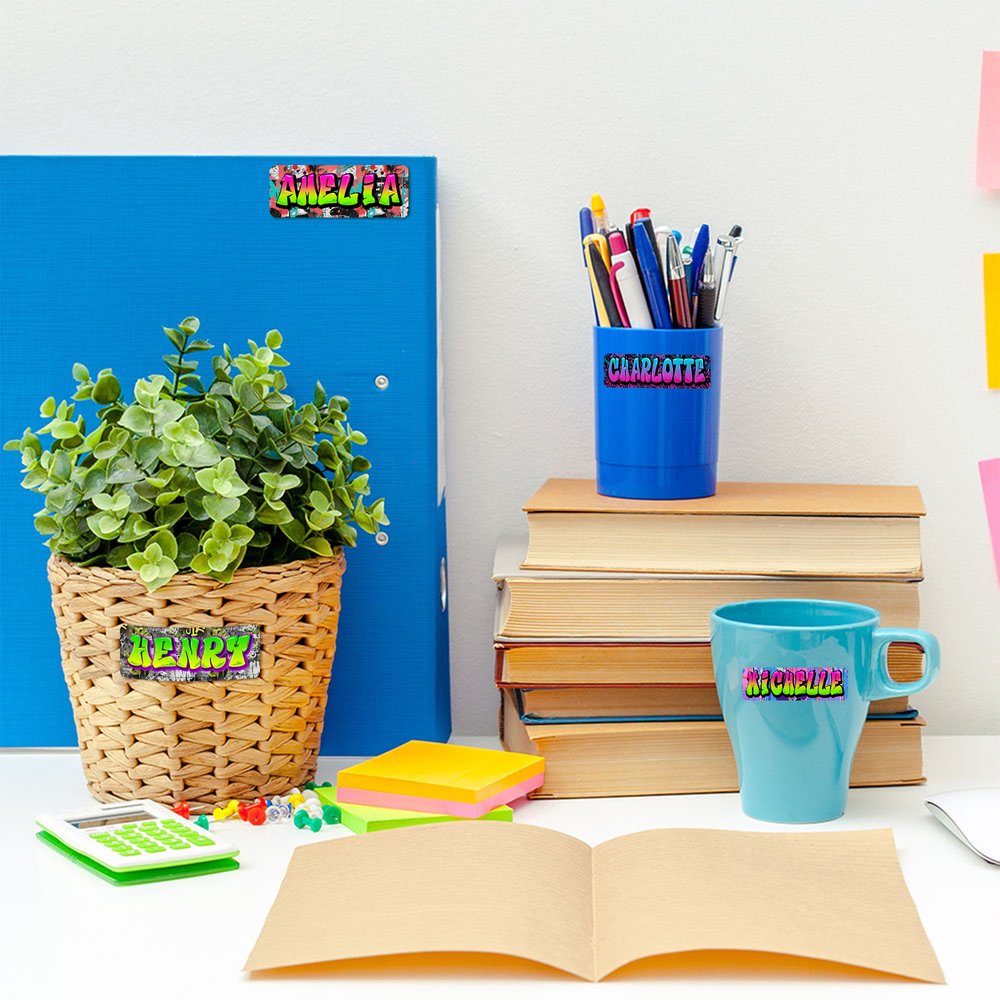 Door de genen van straatgraffitikunst te integreren, is deze naamsticker gebaseerd op 21 achtergrondpatronen, met drie effecten van blauw en roze gradiënt, roze en groen contrast, en groen en paars, waardoor de naam een visueel symbool wordt. Laat de individuele expressie op natuurlijke wijze uit de details vloeien.