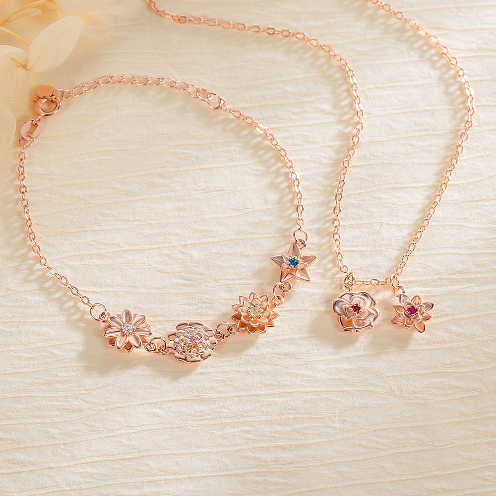 Deze armband en ketting zijn goed gemaakt en prachtig ontworpen om de geboortebloem elegant te laten zien. Het is gemaakt met aandacht voor detail en hoogwaardige materialen om duurzaamheid en een prachtig uiterlijk te garanderen.