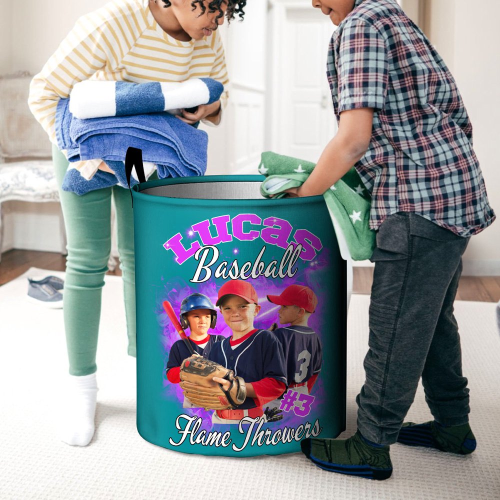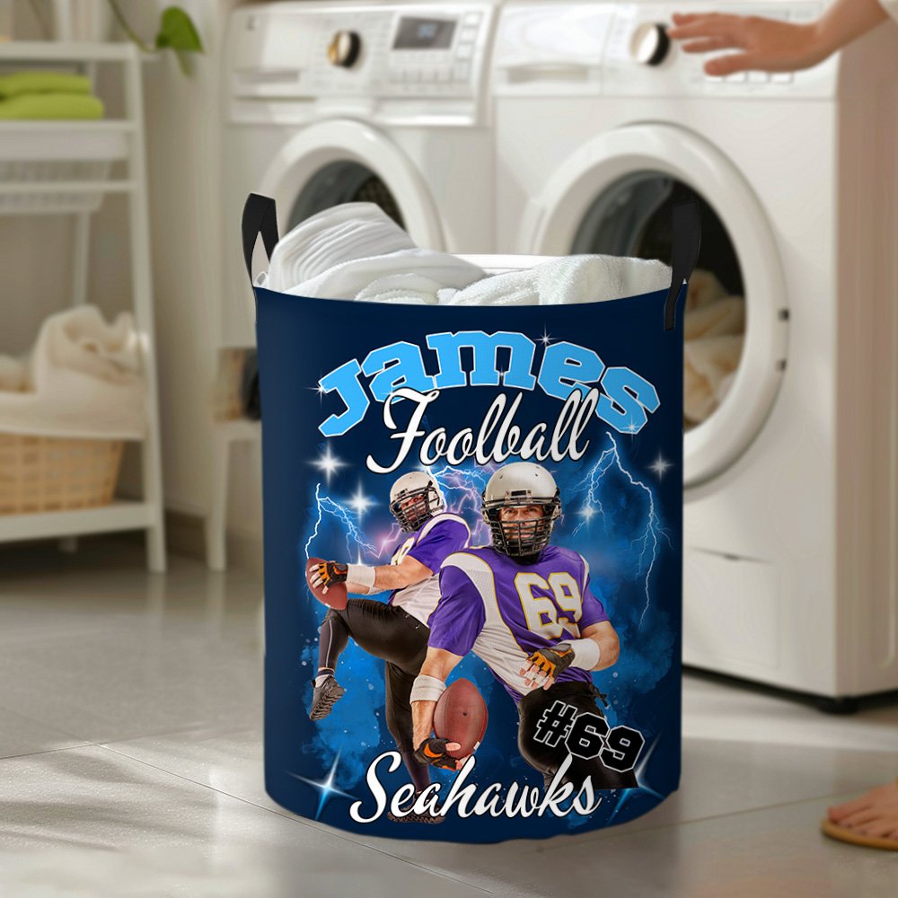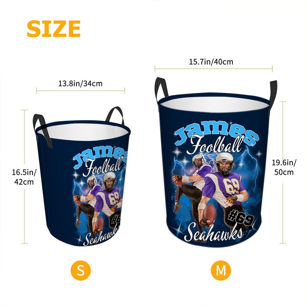 Gebruik deze mand om je passie voor sport te laten zien. De wasmand heeft 12 spannende stijlen die vlammen, bliksem, rook, enz. combineren. Je kunt ook je naam, nummer, slogan en sporttype aanpassen en 1-5 foto's van je favoriete spelers of je beste momenten op het veld uploaden om er een uniek stuk van te maken.
