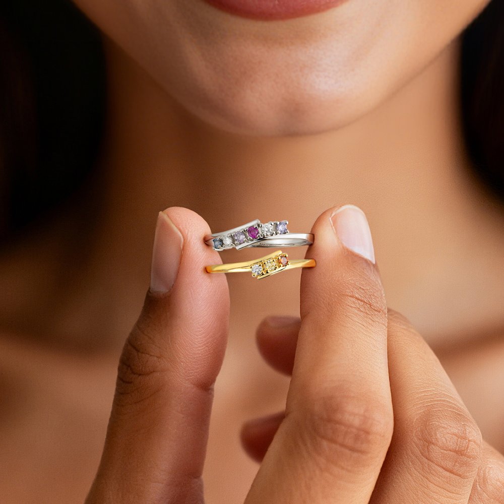 Deze ring is gecentreerd rond de geboortesteen die overeenkomt met de geboortemaand van de drager en brengt volgens de traditionele symboliek geluk en bescherming. De stijl combineert klassieke elegantie met familiegevoel. Aanpasbaar met 1 tot 6 geboortestenen, belichaamt elke steen zegeningen voor de aangewezen maand. Hij wordt dagelijks gedragen en straalt verfijnde smaak uit terwijl hij op subtiele wijze genegenheid voor dierbaren uitstraalt - een combinatie van esthetische waarde en herdenkingsbetekenis.