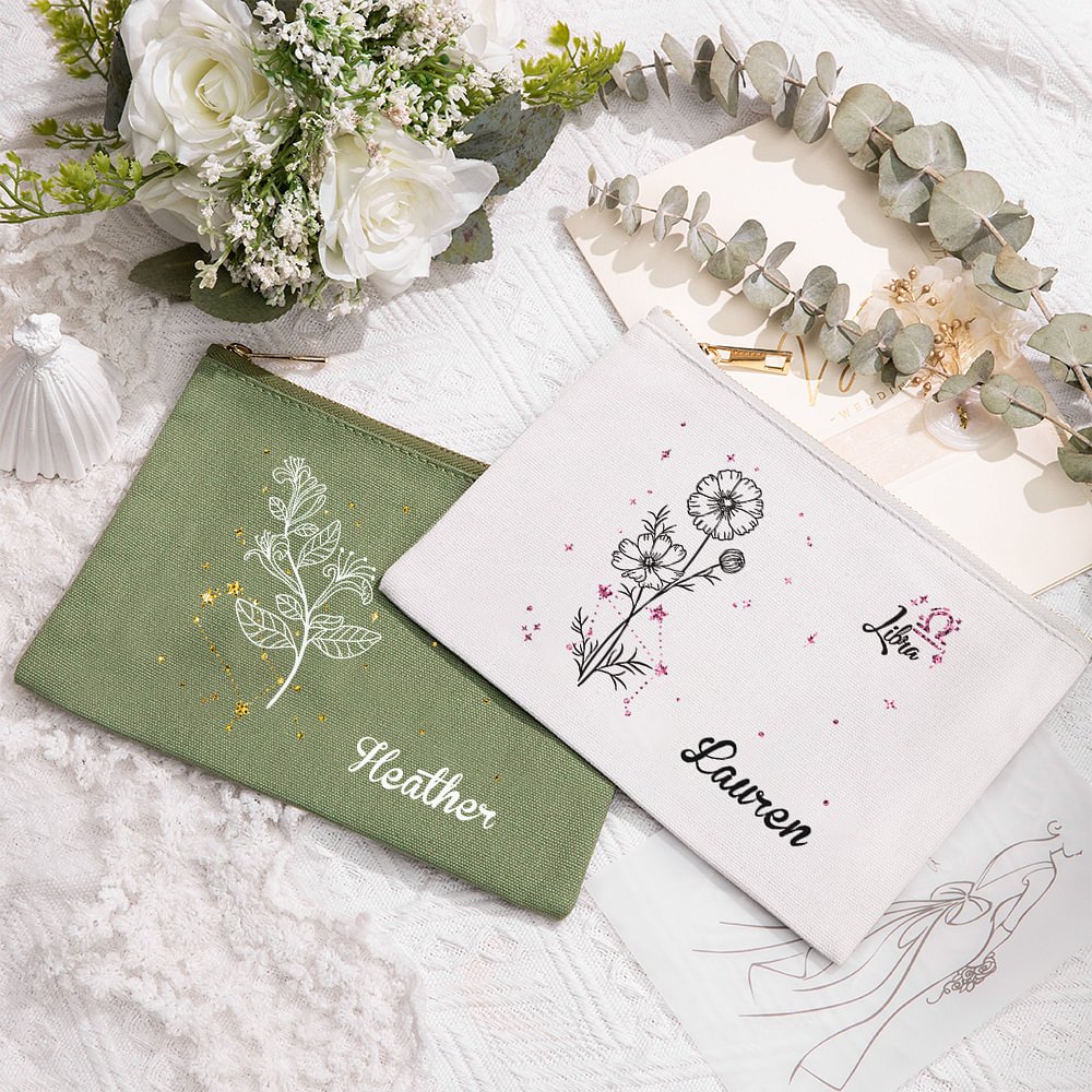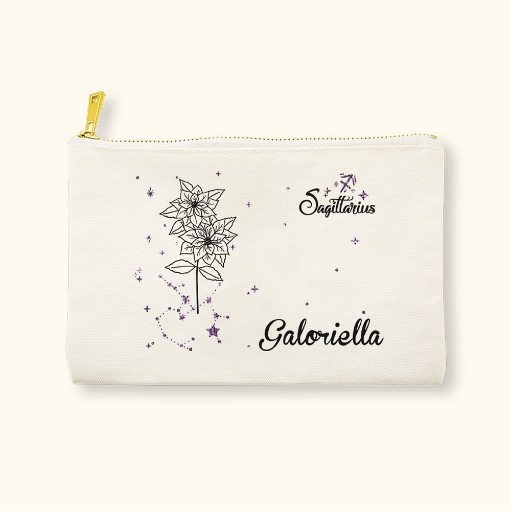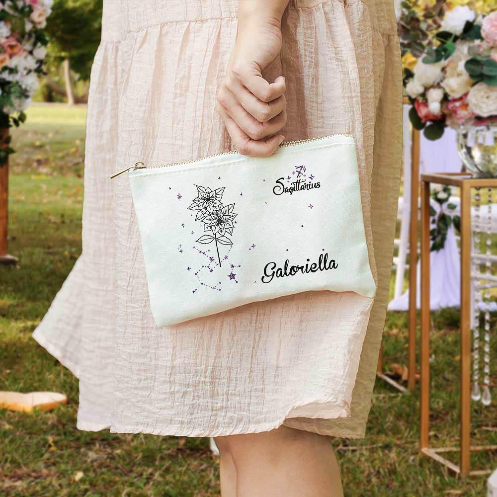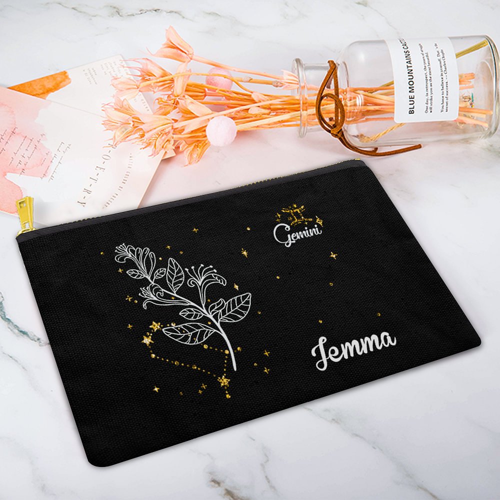 Elk make-uptasje heeft een betoverend ontwerp dat de sterrenbeelden van de dierenriem en geboortebloemen combineert, waardoor het een uniek betekenisvol cadeau is. Het kan gepersonaliseerd worden met het sterrenbeeld van de dierenriem en de geboortebloem van de ontvanger, en de pailletten-details voegen ook een vleugje glamour en verfijning toe, waardoor het een glamoureuze aanvulling is op elke ijdelheid of reisset.
