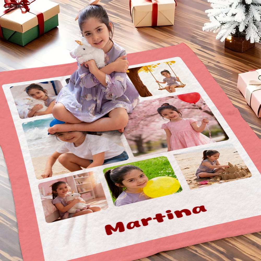Deze aanpasbare deken is perfect voor vakanties, verjaardagen of Moederdag en verandert dierbare foto's in een warme, dagelijkse bron van troost. Een doordachte manier om familie, vriendschap of jeugdherinneringen te vieren, waardoor elk cadeau zowel zinvol als nuttig is.