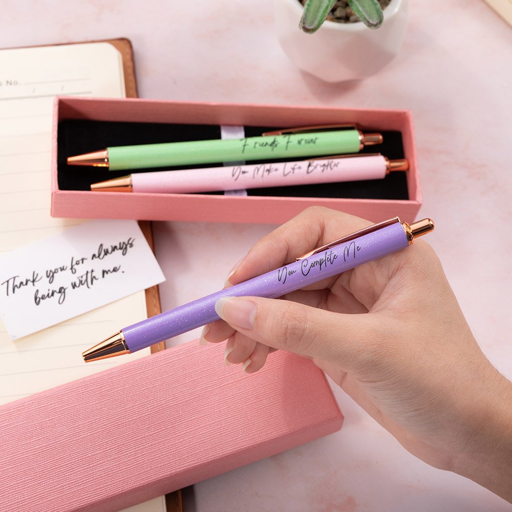 Of je nu aantekeningen maakt tijdens een vergadering, in een dagboek schrijft of krabbelt tijdens een pauze, deze pennen zullen elke schrijfervaring inspireren. De pennen zijn gemakkelijk op te bergen en te bewaren in de geschenkverpakking. De elegante roze doos is ook perfect om cadeau te geven.