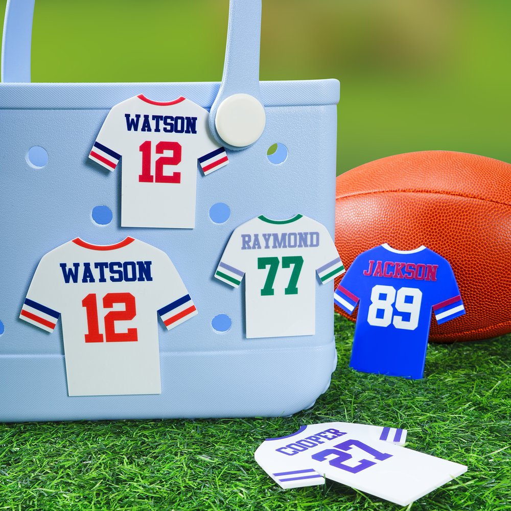 Ontworpen op basis van voetbalshirts, creëert het exclusieve tas charme rituelen. De kleuren van de shirts omvatten basiskleuren en glitterafwerkingen, waardoor ze voldoen aan verschillende stijlvoorkeuren. Je kunt een rugnummer en een naam aanpassen. Het is net alsof je je tas aankleedt in een mini "team-supporting jersey", zodat je je liefde voor je team/speler overal kunt "dragen".