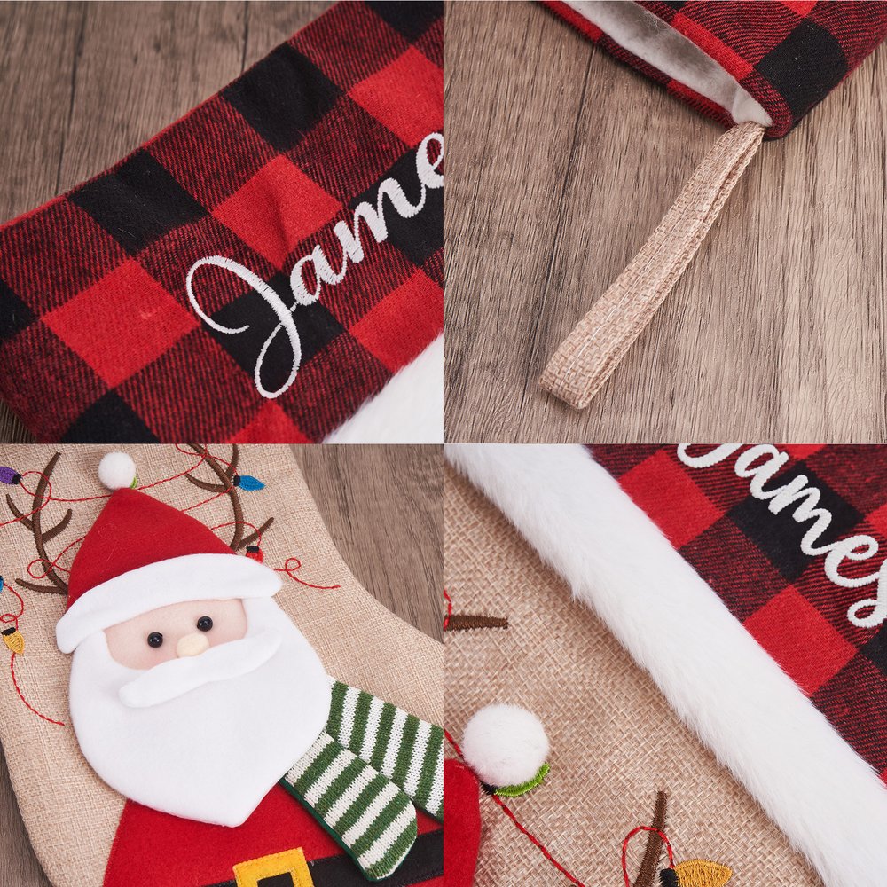 Deze kerstsok is met zorg vervaardigd in 4 charmante 3D-stijlen: sneeuwpop, kerstman, ijsbeer en rendier – elk met prachtige details, alsof ze zo uit een sprookjesboek komen. Kies uit 4 verschillende lettertypes om er een naam aan toe te voegen, waardoor het een unieke kerstdecoratie wordt. De klassieke rood-en-zwart geruite manchet, gecombineerd met een zachte pluizige rand, geeft een gezellig traditioneel tintje.