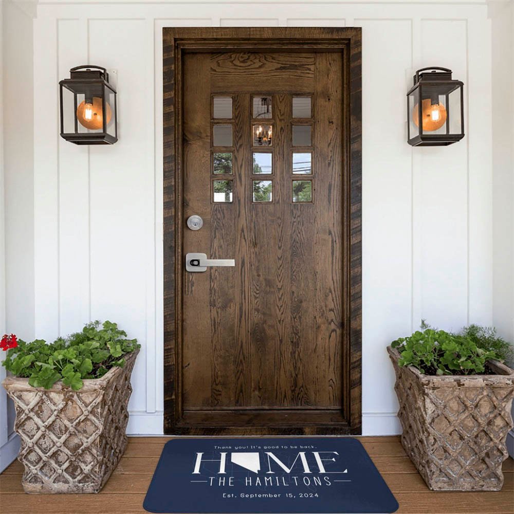 Onze "HOME" design deurmat is beschikbaar voor alle staten, zodat je kunt kiezen voor de staat die het meest bij je past. Of je nu je geboorteplaats wilt eren, een geliefde vakantieplek wilt gedenken of de staat wilt omarmen die je nu "thuis" noemt, met dit veelzijdige ontwerp zit je altijd goed.