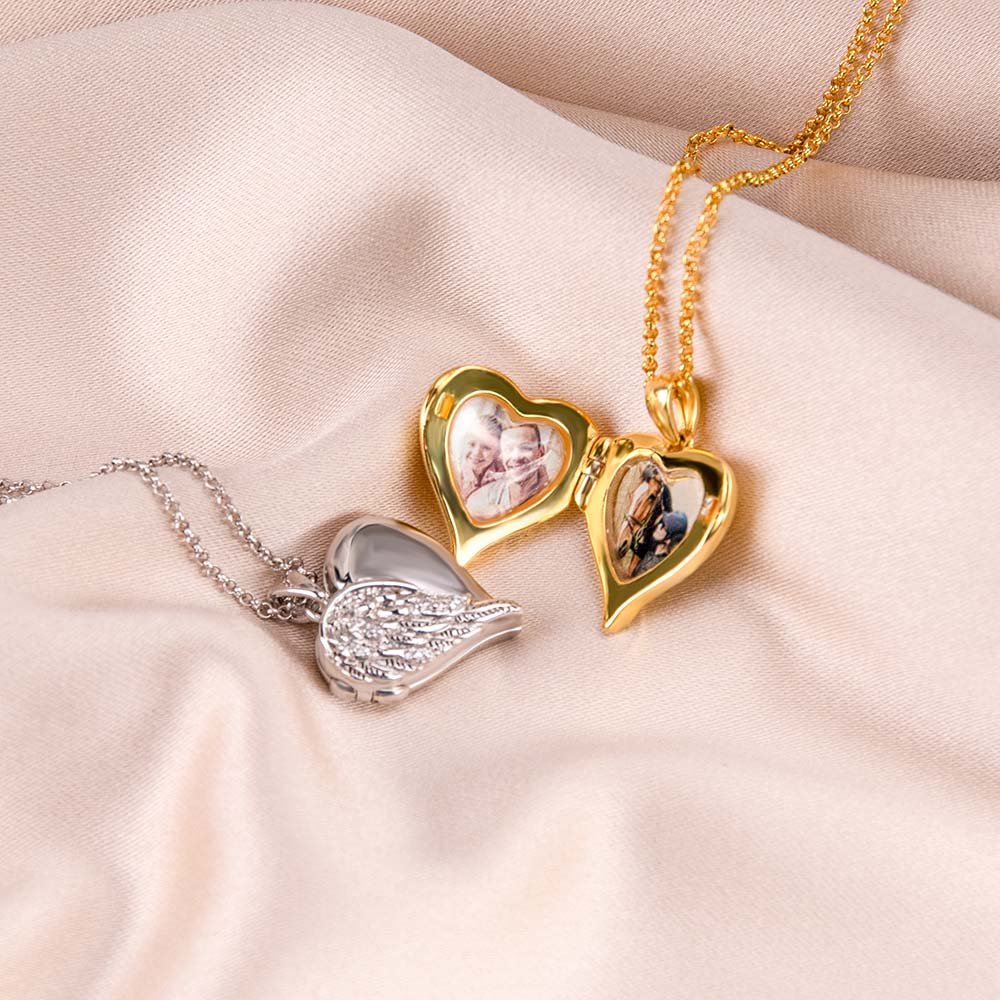 Deze medaillon-hartketting met engelenvleugels is het perfecte cadeau voor een geliefde, vriend(in) of jezelf. Het elegante en prachtige ontwerp drukt je liefde en genegenheid uit voor iemand om wie je geeft. Dit prachtige sieraad wordt geleverd met foto's om cadeau te geven.