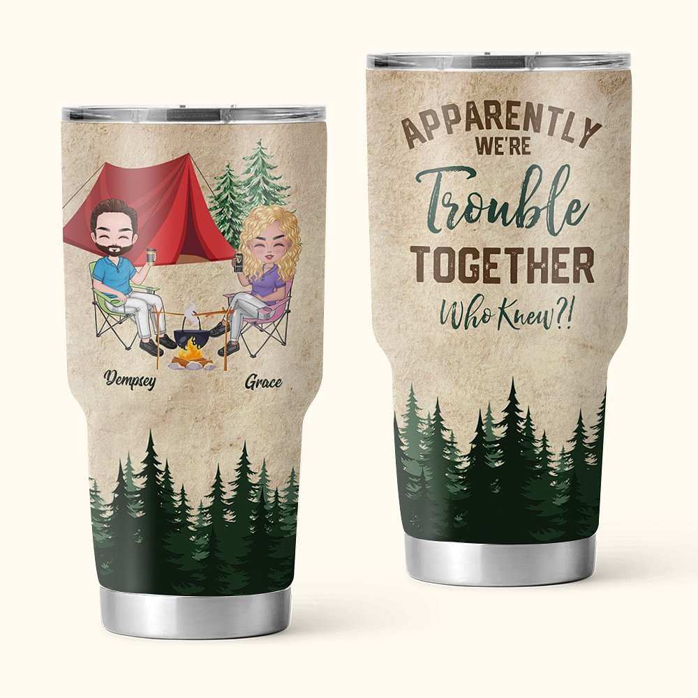 Gepersonaliseerde Apparently We're Trouble Together Who Knew Camping Couple 30oz Tumbler Gift voor Camping Couple