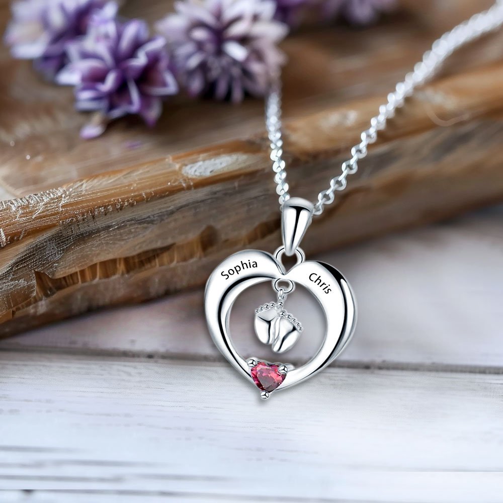 Deze ketting als geheel maakt gebruik van het ontwerp van de liefde rond de voetjes van de baby, en past dan bij de sprankelende hartvormige geboortesteen, die zeer design is. De ketting laat de liefde en zorg van een moeder voor haar kind zien. Je kunt de geboortesteen kiezen op basis van de geboortemaand, en de ketting is geschikt om te combineren met verschillende kleuren en soorten rokken, jurken, overhemden, etc., zodat je je onderscheidt van de massa.