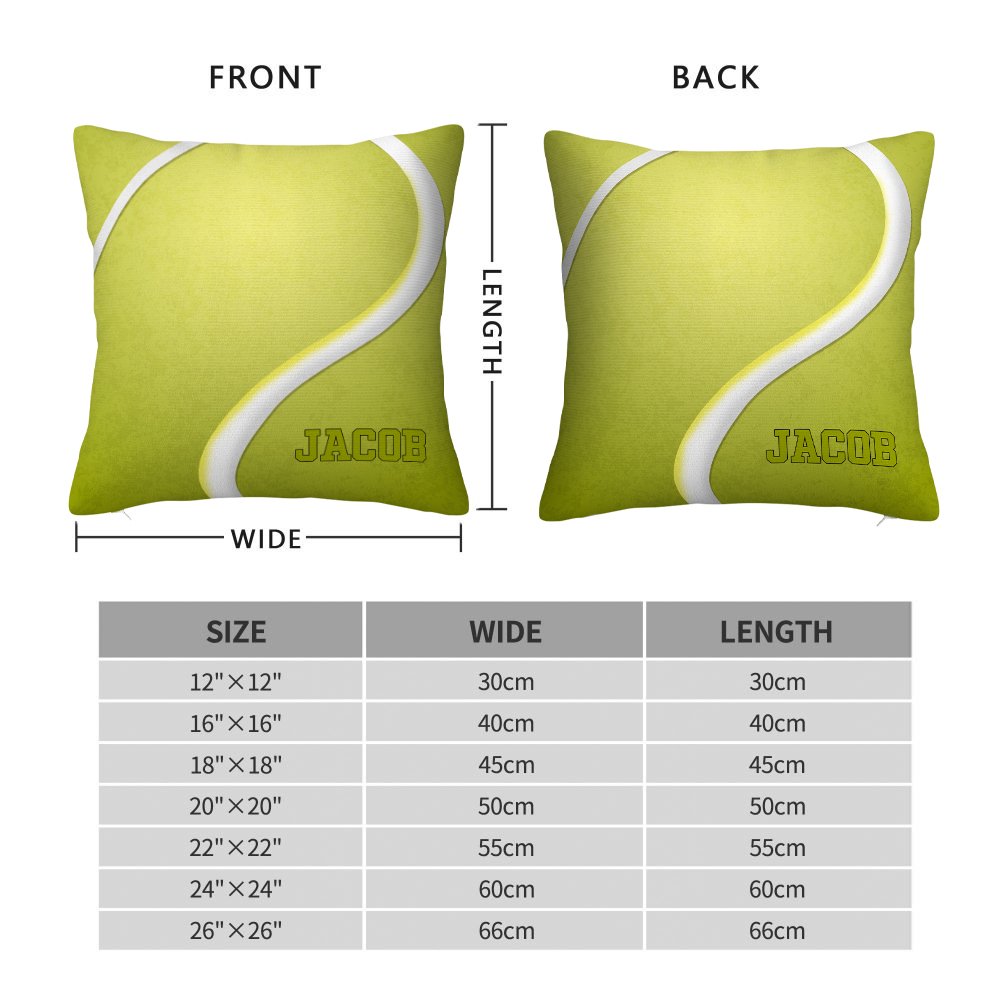 De vierkante kussenhoes is ontworpen met een bal als thema en omvat zes balsporten: basketbal, rugby, honkbal, voetbal, volleybal en tennis. Het klassieke kleurenschema en patroon trekken de aandacht. De optie van een gepersonaliseerde naam zorgt voor een unieke woondecoratie.