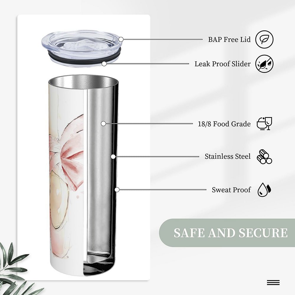 Met een inhoud van 20 oz is deze skinny tumbler ideaal voor zowel kinderen als volwassenen. Hij is perfect voor op reis, school, werk of balletlessen. Door het slanke ontwerp is hij makkelijk vast te houden en mee te nemen, terwijl het veilige deksel morsen en lekken voorkomt, zodat je onderweg van je drankje kunt genieten.