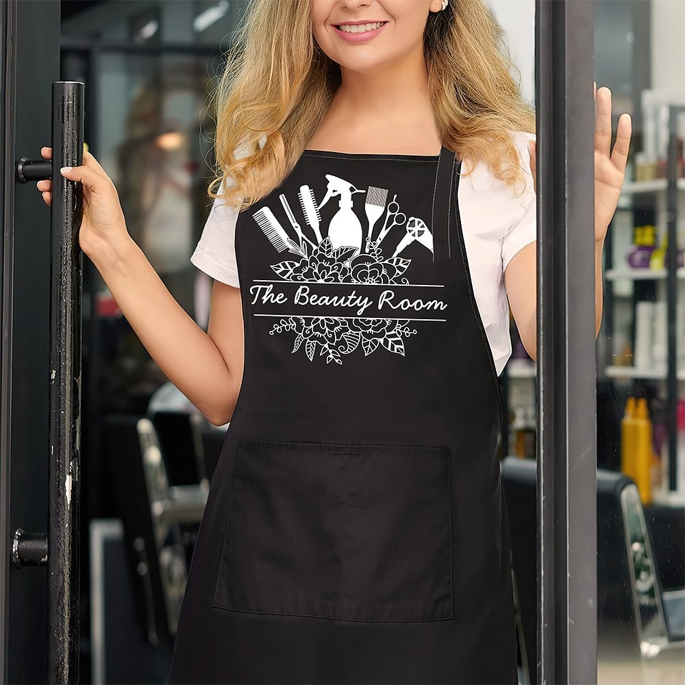 Dit veelkleurige unisex schort heeft unieke kapperselementen. Het patroon op de bovenkant van het schort bevat verschillende klassieke kapperselementen, zoals scharen, kammen, spuitflessen en haarverfborstels, waardoor een dynamische en gelaagde look ontstaat. Effect. Het kan gepersonaliseerd worden met namen, waardoor het een geweldig cadeau is voor haarliefhebbers in de kapperszaak of schoonheidssalon.