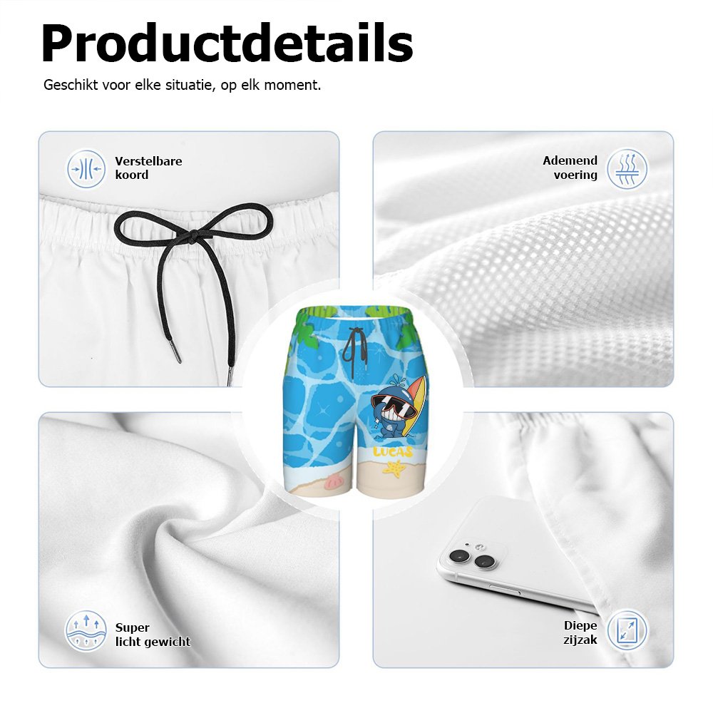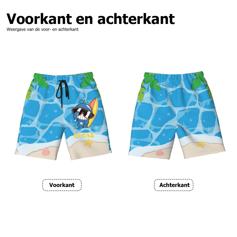 Deze gepersonaliseerde strandbroek met zeethema is perfect als zomers reiscadeau of als verjaardagsverrassing en is een leuke keuze voor tienerjongens. Laat ze hun eigen surfstijl omarmen met een op maat gemaakte broek waarop hun naam staat afgebeeld naast levendige ontwerpen van zeedieren, waardoor elke dag aan het water nog specialer wordt!