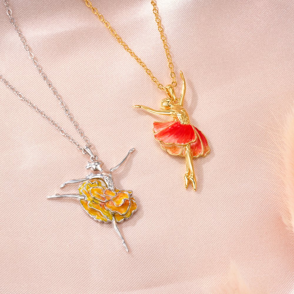Deze prachtige ketting is geïnspireerd op de gratie van ballet en toont een delicaat silhouet van een ballerina in een prachtige draaiende pose. De rok van de danseres is artistiek bewerkt tot bloeiende bloemblaadjes die uw specifieke geboortemaand vertegenwoordigen, waardoor een perfecte samensmelting ontstaat van artistieke beweging en florale symboliek die zowel de dans als de schoonheid van de natuur viert.