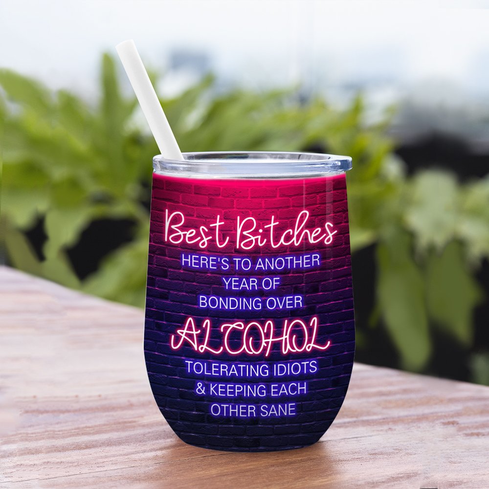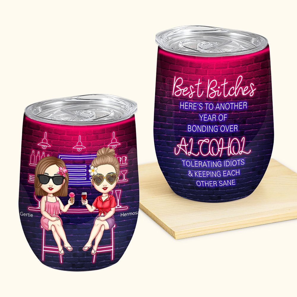Gepersonaliseerde Best Bitches Here's to Another Year of Bonding over Alcohol 12oz Wine Tumbler Verjaardag Kerstcadeau voor Besties Zussen