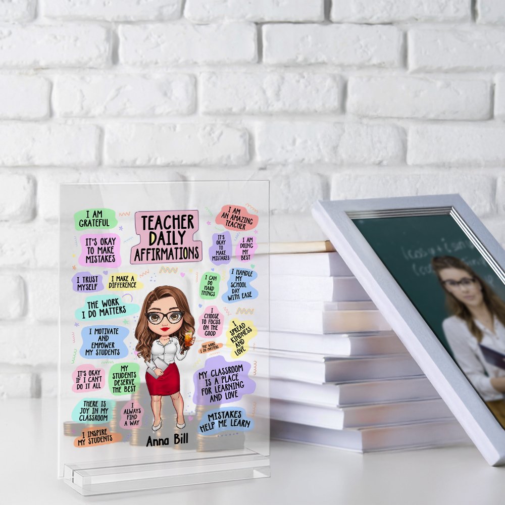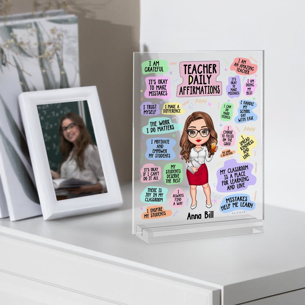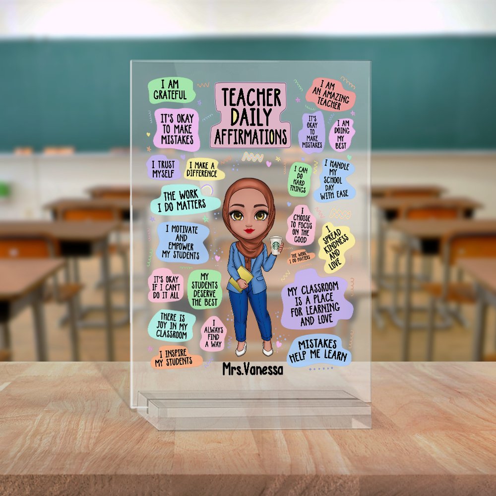 Deze acrylplaat integreert collage en "Dagelijkse Affirmaties" elementen, gecombineerd met een uniek stripfiguur van een leraar. Het ondersteunt het aanpassen van cartoonafbeeldingen en namen, met de positieve betekenis van "herinner jezelf er altijd aan dat je geweldig bent", waardoor de plaquette een spirituele metgezel en decoratie wordt die elke keer dat je hem ziet een warme aanmoediging geeft.