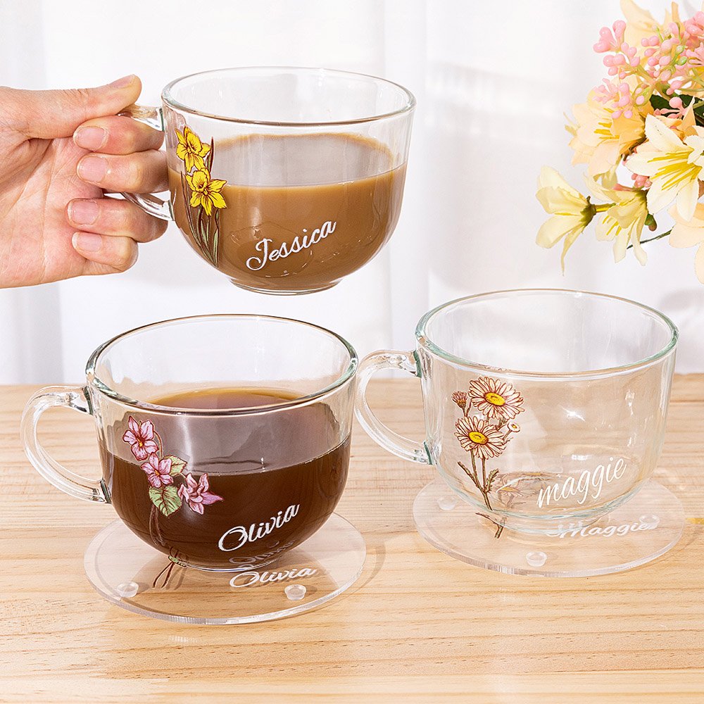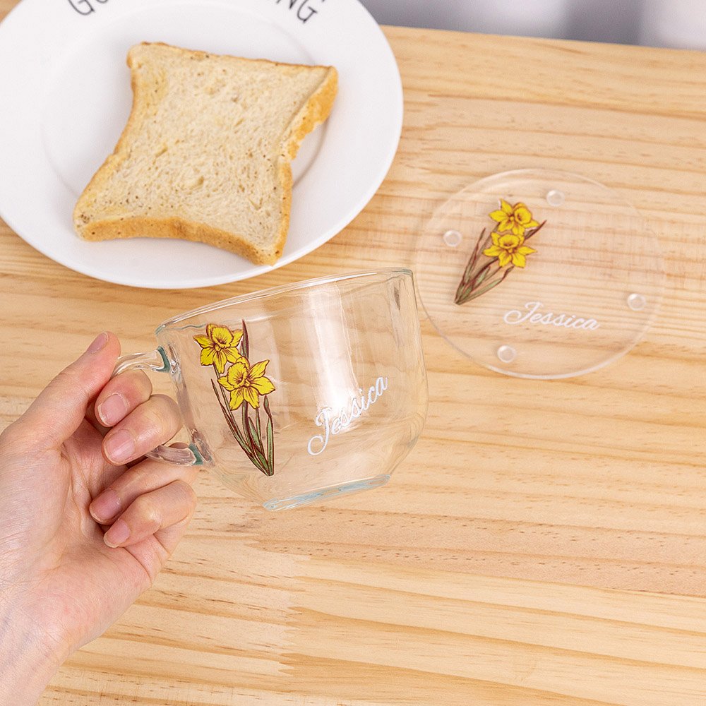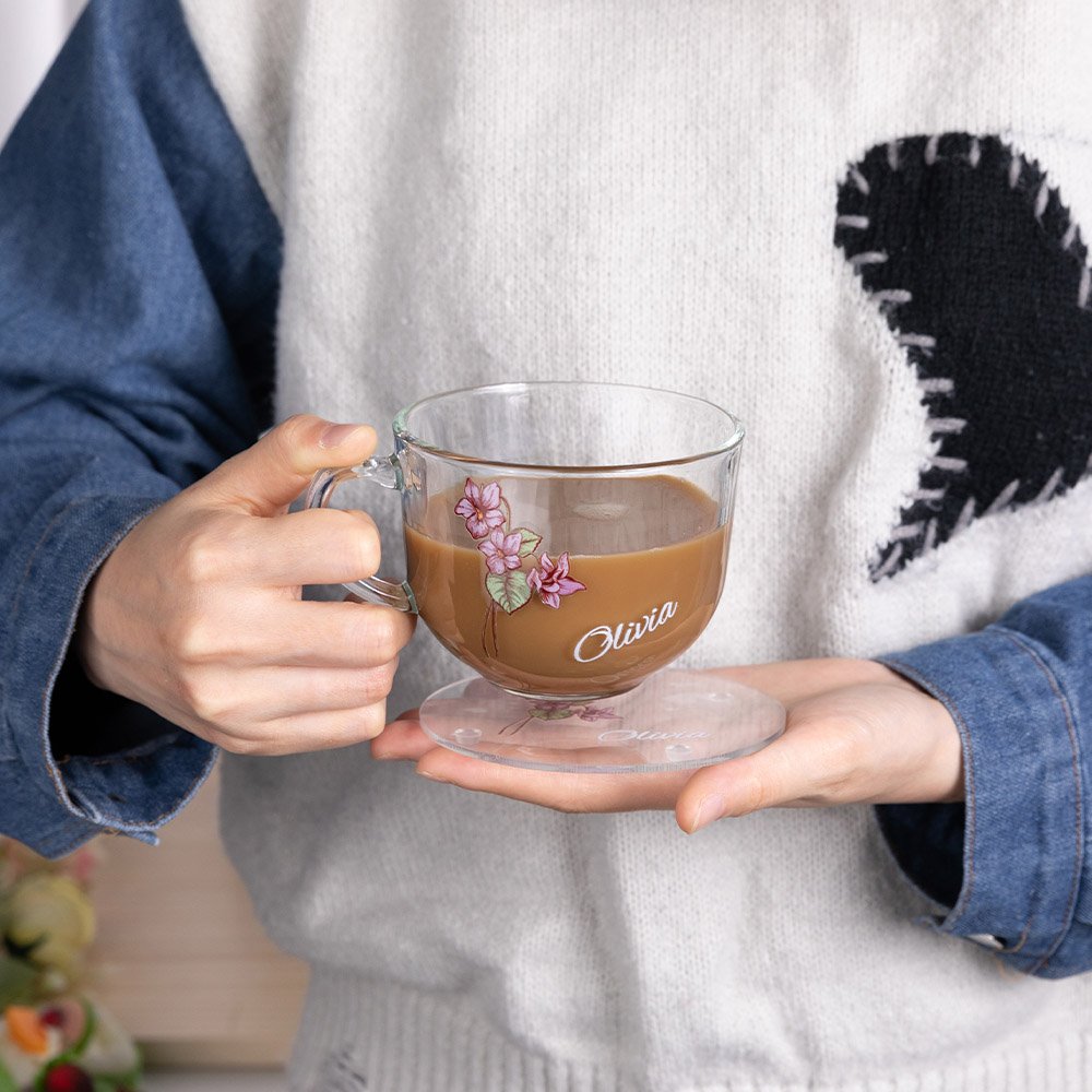 Het bloemmotief op deze koffiemok en onderzetter komt tot leven en je kunt de naam van de ontvanger personaliseren op zowel de mok als de onderzetter. Onderzetter en mok lichaam aanpassing inhoud zijn hetzelfde, dit geschenk zal meer verrassend voor de ontvanger.