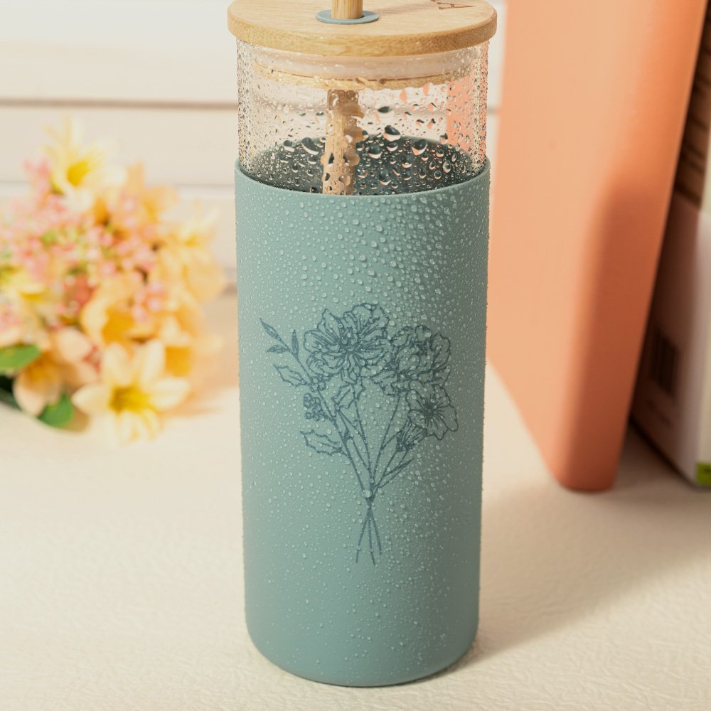 Geniet van de luxe van personalisatie met ons 17 oz glas. We gebruiken lasertechnologie om levendige 1-5 geboortebloemen weer te geven op de siliconen hoes van het glas en lasergraveertechnologie om de naam op het bamboe deksel aan te passen. Uitstekend vakmanschap en persoonlijke aanpassingen zorgen ervoor dat je glas een tijdloos souvenir wordt.