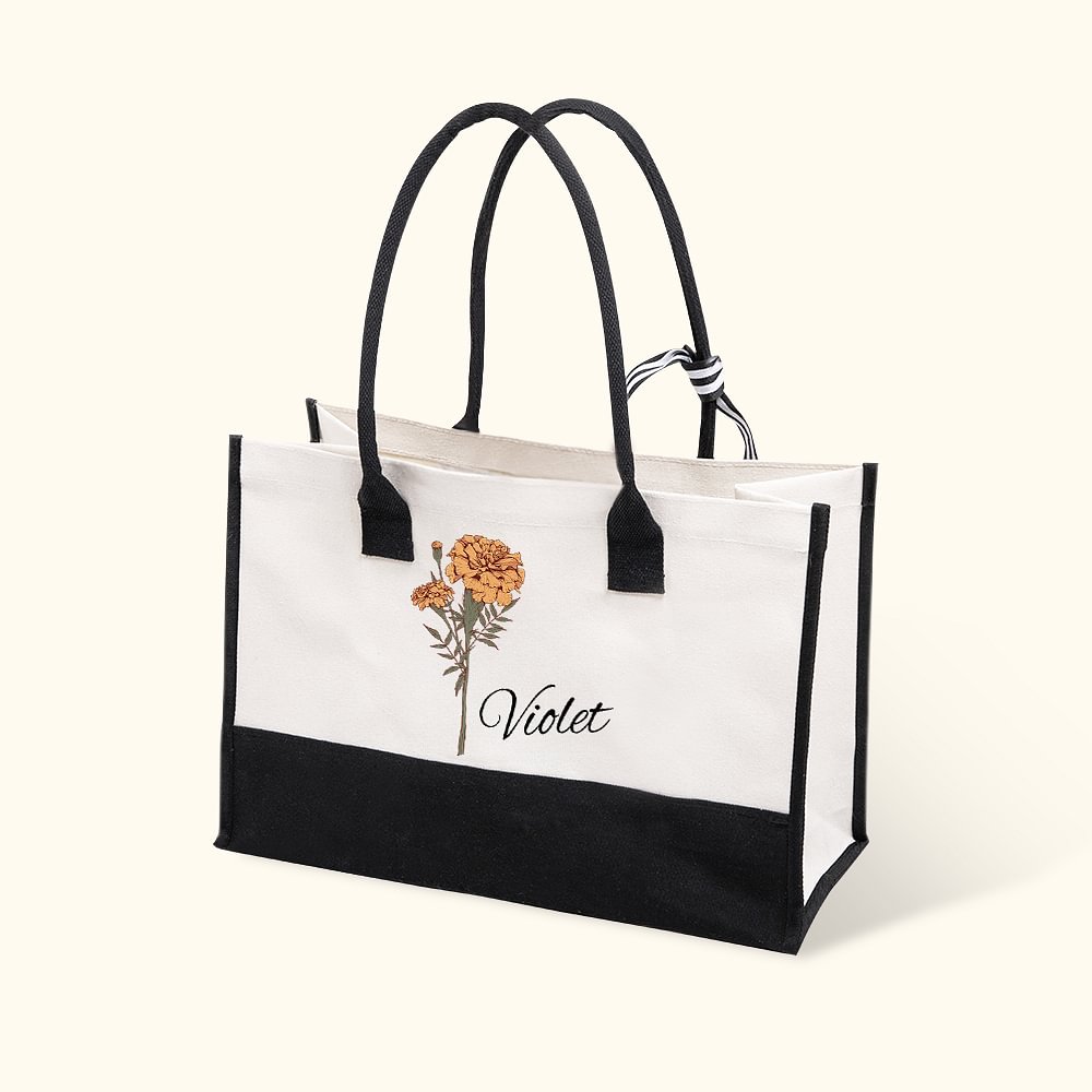 Het unieke aan deze draagtas is dat je de bijbehorende geboortebloem kunt kiezen en een naam kunt toevoegen om een uniek souvenir te maken op basis van je verjaardag.
