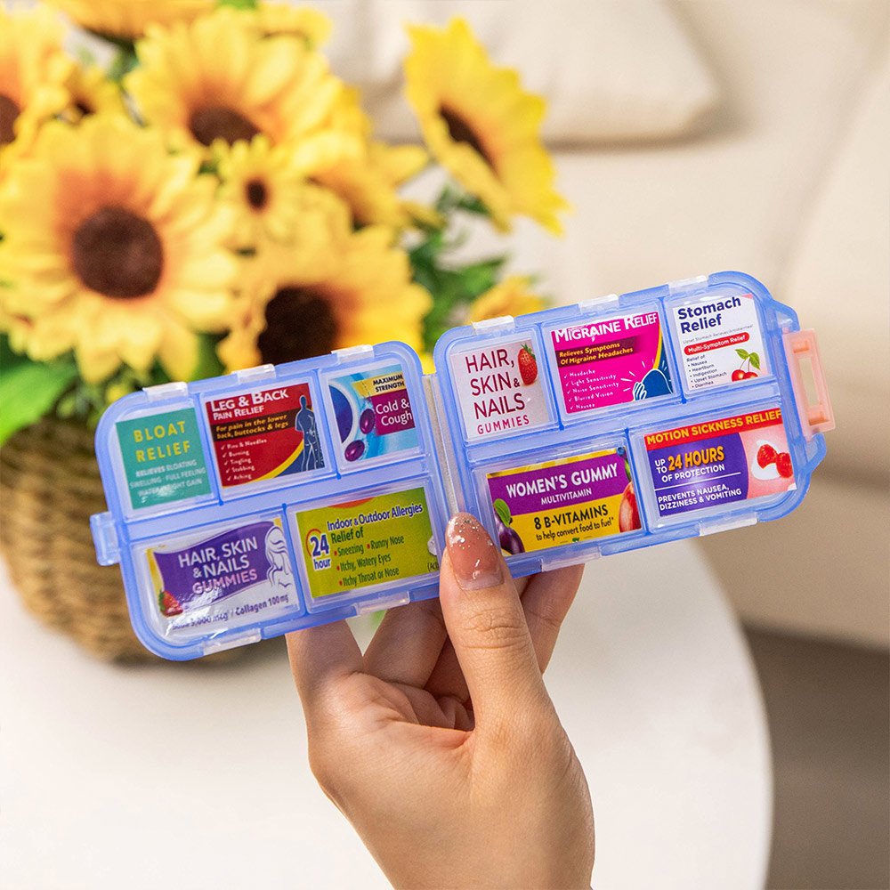 Het interieur van de medicijndoos is ontworpen met meerdere compartimenten, die op wetenschappelijke wijze een verscheidenheid aan medicijnen kunnen indelen en opslaan, zodat gebruikers dagelijkse medicijnen of gezondheidsproducten gemakkelijk kunnen beheren. Het is klein en gemakkelijk mee te nemen, geschikt voor op reis, zakenreizen of het dagelijks leven, zodat je altijd en overal aan je gezondheidsbehoeften kunt voldoen.
