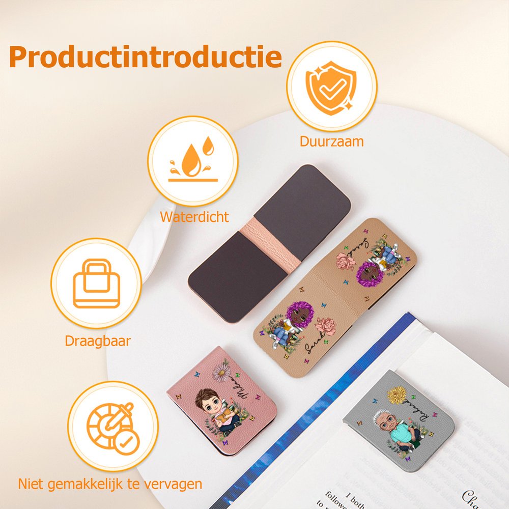 U kunt kiezen uit meer dan tien leerkleuren, zoals bruin, bonenpasta en lichtbruin, die precies bij uw voorkeuren passen. U kunt een cartoonfiguur en uw naam naar wens personaliseren. U kunt ook een geboortebloem kiezen op basis van uw verjaardag. Of u het in uw hand houdt of in een boek vastzet, het geeft een uniek en persoonlijk gevoel.