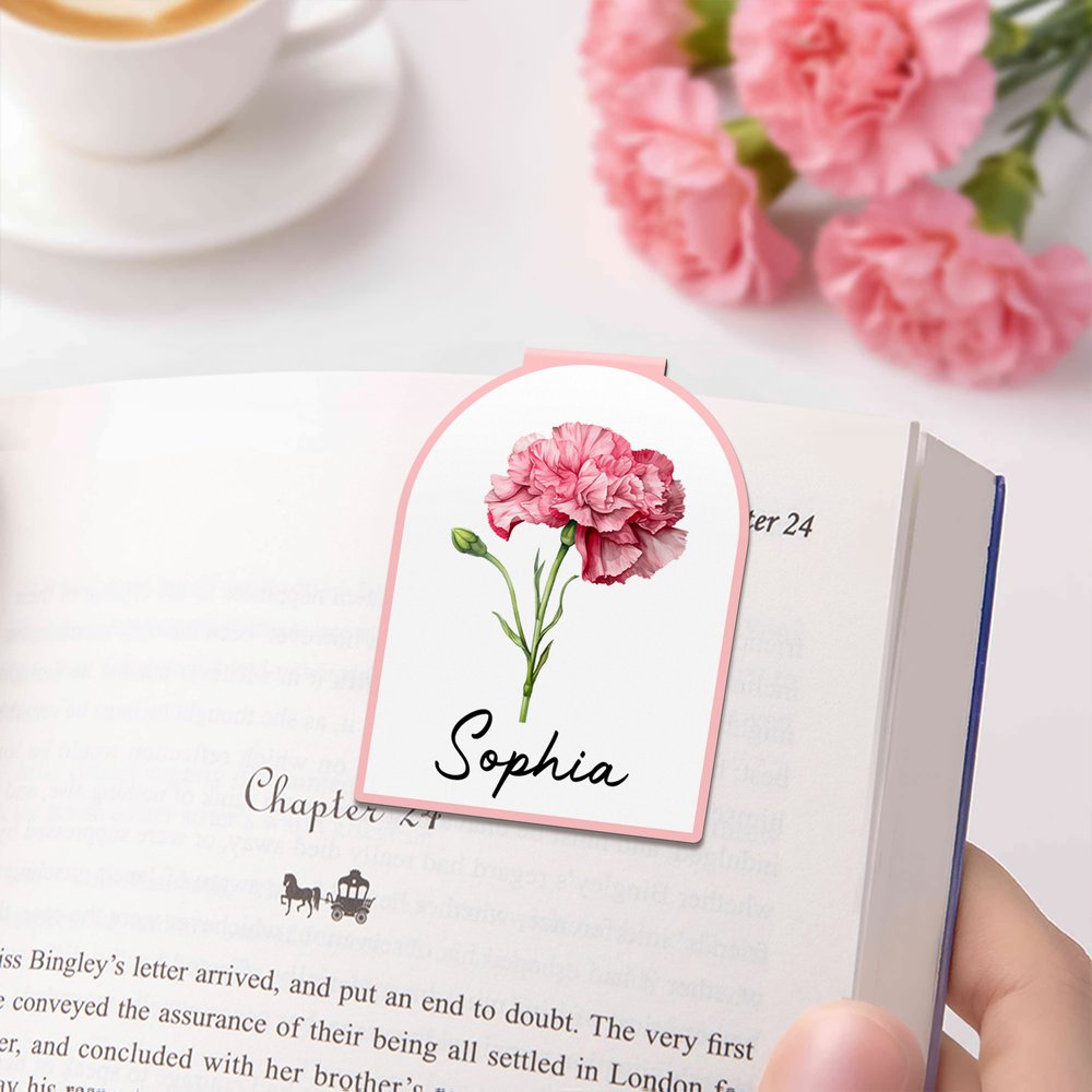 Deze bladwijzerclip integreert kunstig motieven van geboortebloemen met persoonlijke namen. Elke bloem is levensecht weergegeven en roept een uniek verhaal op. In combinatie met een eigen naam wordt het een exclusief kunstwerk. Het sierlijke gebogen silhouet introduceert een element van verfijnde eigenzinnigheid, waardoor het elegant opvalt tussen de pagina's.