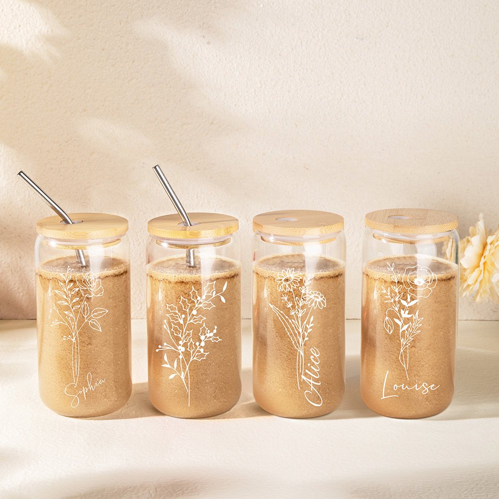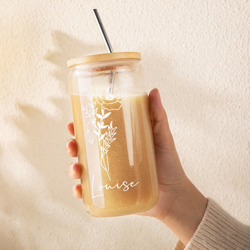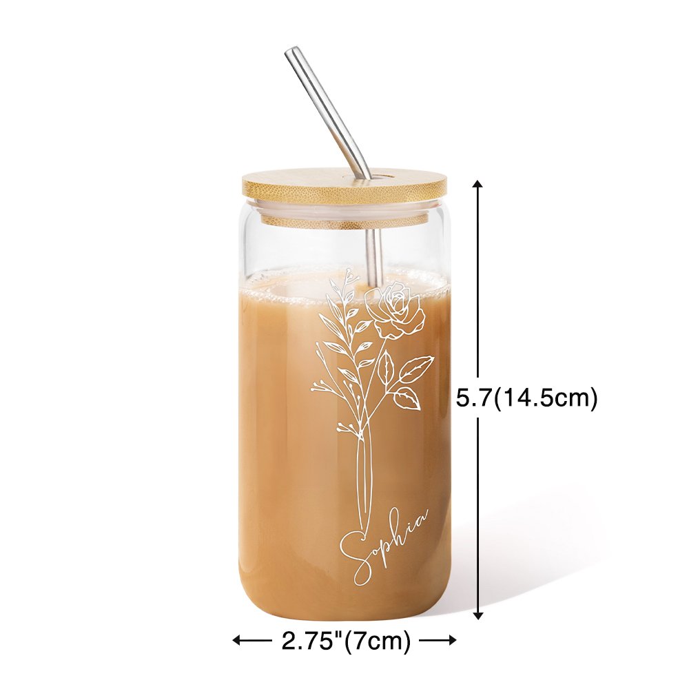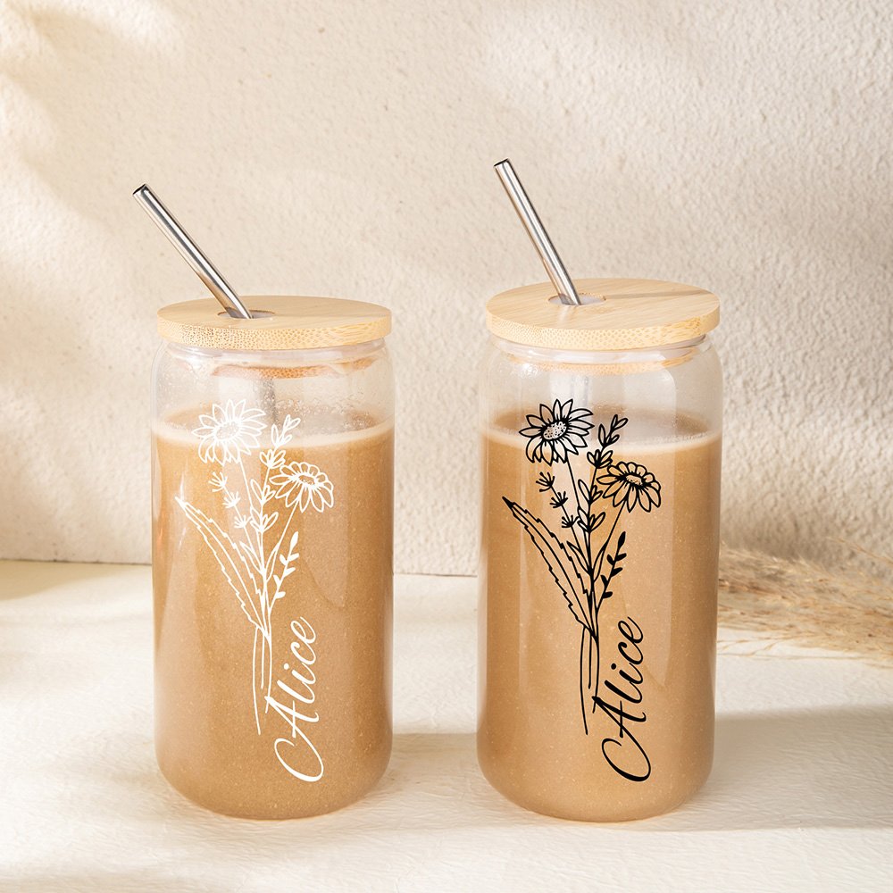 Deze ijskoffiekop heeft een uniek zwart of wit ontwerp van een geboortebloem, gepersonaliseerd met de naam van de ontvanger. De geboortebloem voegt individualiteit toe en is een ideaal cadeau voor speciale gelegenheden zoals verjaardagen, bruiloften of jubilea.
