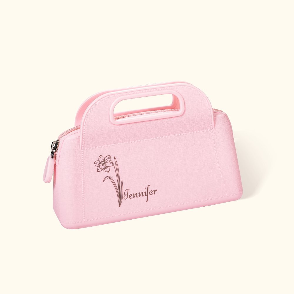 Maak deze handtas echt uniek door een persoonlijk tintje toe te voegen met een ontwerp van een geboortebloem en de naam van de ontvanger. Elke geboortebloem staat voor een specifieke maand en voegt een persoonlijk en betekenisvol element toe aan de tas.