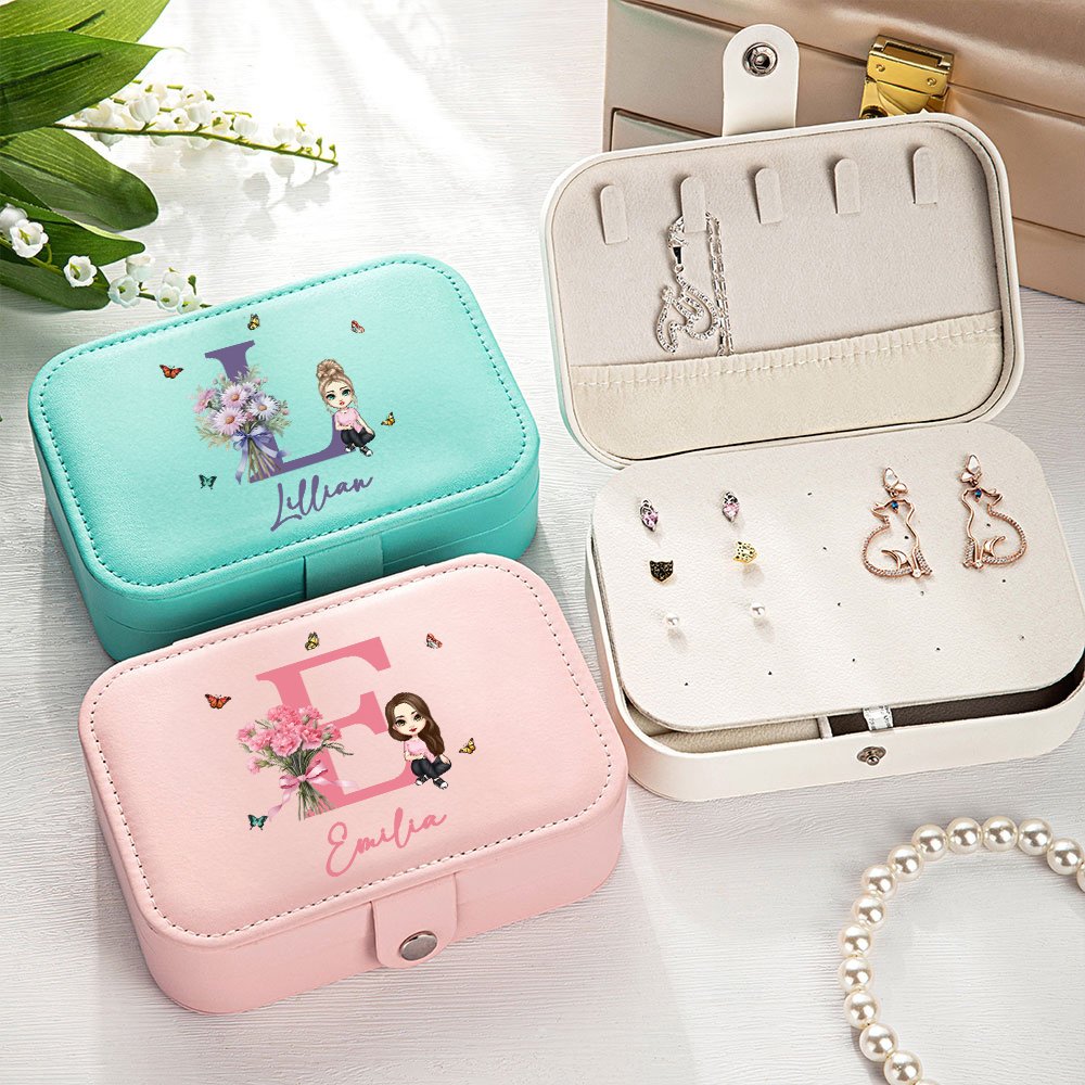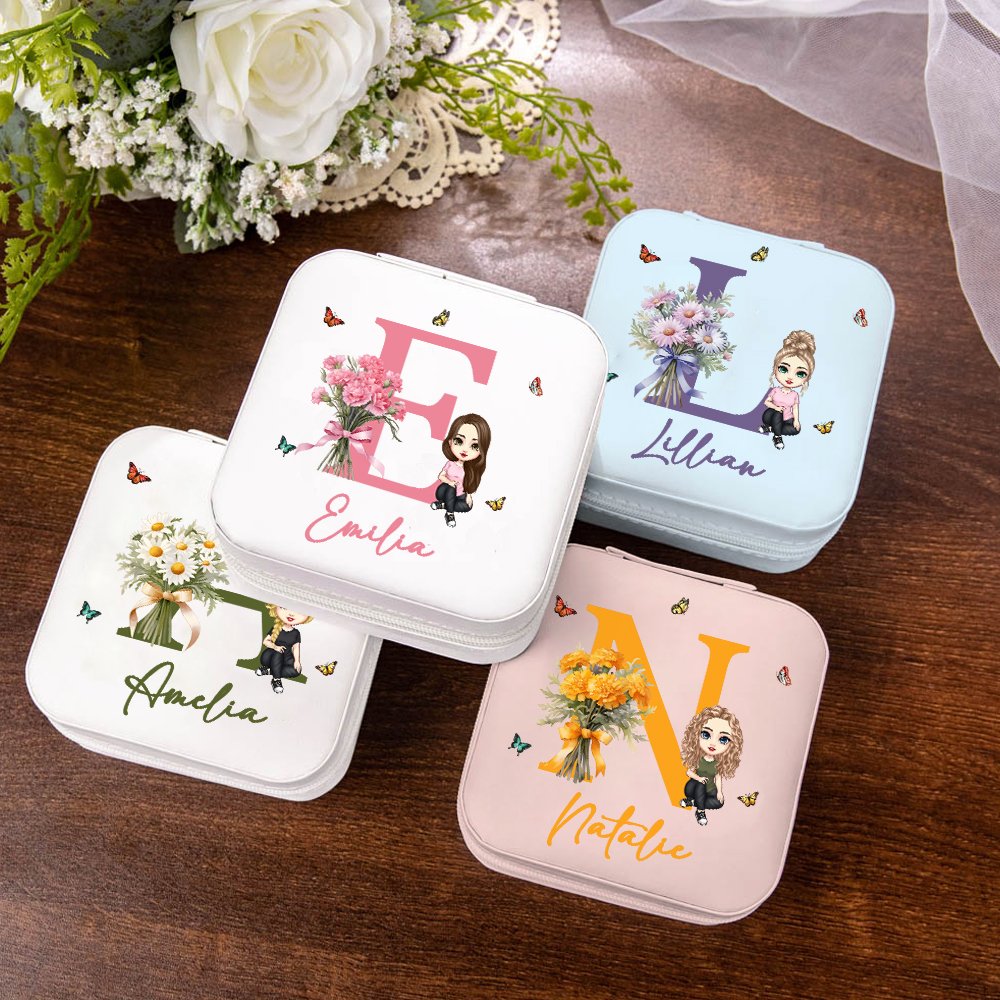Gepersonaliseerde draagbare geboorte bloem cartoon karakter sieraden doos met naam kerst verjaardag cadeau voor vrouwen meisjes