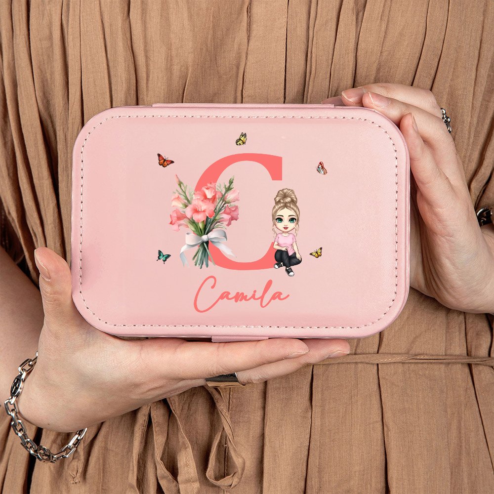 Dit draagbare juwelendoosje kan stripfiguren aanpassen die op de ontvanger kunnen lijken. Het personage is kunstig geïntegreerd met geboortebloemen. Gepersonaliseerd met een naam, wordt deze sieradendoos een uniek stuk dat individualiteit en persoonlijke stijl viert. De combinatie van het karakter, de geboortebloemen en de naam creëert een uniek ontwerp waardoor de ontvanger zich echt speciaal voelt.
