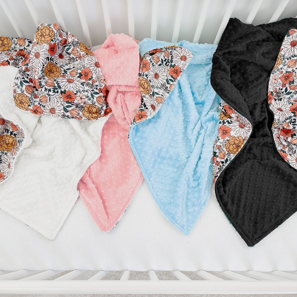 Deze gepersonaliseerde babydeken heeft een charmant bohemien bloemenpatroon op de voorkant en een aanpasbare babynaam geborduurd op de achterkant, met oprechte zegeningen voor kinderen.