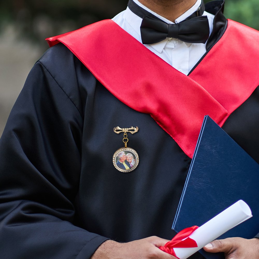 Met de door jou geselecteerde foto's in het middelpunt van je visie en elegante decoratieve boogelementen, benadrukt deze broche je persoonlijke herinneringen en voegt een gevoel van romantiek en ceremonie toe aan het algehele ontwerp. Het fotolijstje is versierd met zirkonia's en de achterkant van de foto kan ook worden aangepast met tekst. De strik is delicaat en geeft een zachtere, waardigere uitdrukking aan de foto's die herinneringen bevatten, perfect passend bij de sfeer van bruiloften, afstuderen en andere belangrijke momenten in het leven.