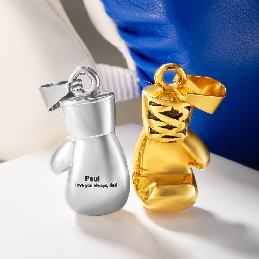 Je kunt deze ketting eenvoudig aanpassen door je naam op de eerste regel en je boodschap op de tweede regel in te vullen en je favoriete kleur te kiezen uit drie verschillende kleuren. Voor iemand die van boksen houdt, is het geven van een boksketting een goed cadeau om hem/haar te inspireren.