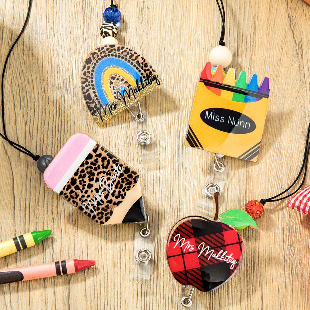 Dit mooie kralenkoord gebruikt klassieke elementen (regenboog, potlood, krijt, appel) en maakt gebruik van glitteracryl, wat goed past bij de professionele eigenschappen van leraren en zowel mooi als praktisch is. Je kunt niet alleen de stijl kiezen die je wilt, maar je kunt er ook een persoonlijke naam op laten zetten om het uniek te maken. Wij bieden een aangepaste gravure op het taslabel, zodat u uw naam, initialen of een speciale boodschap kunt toevoegen.