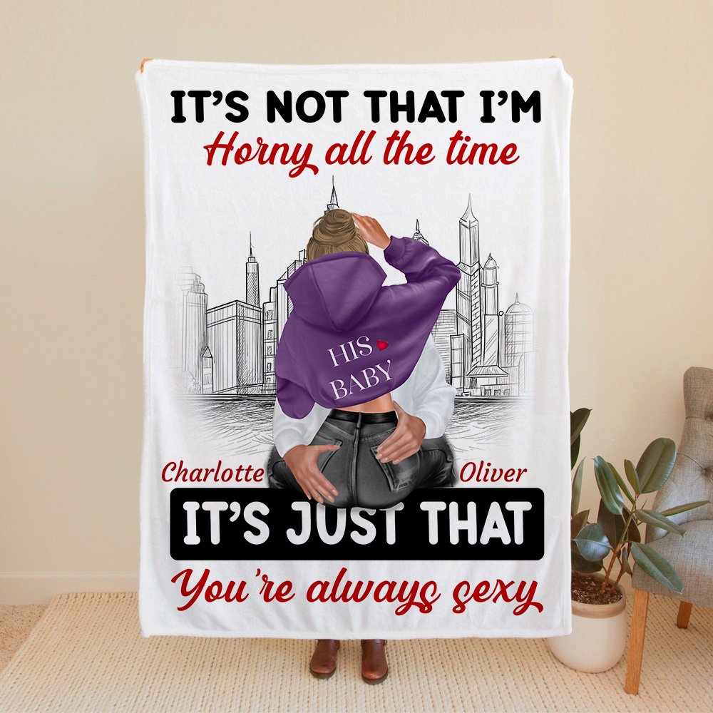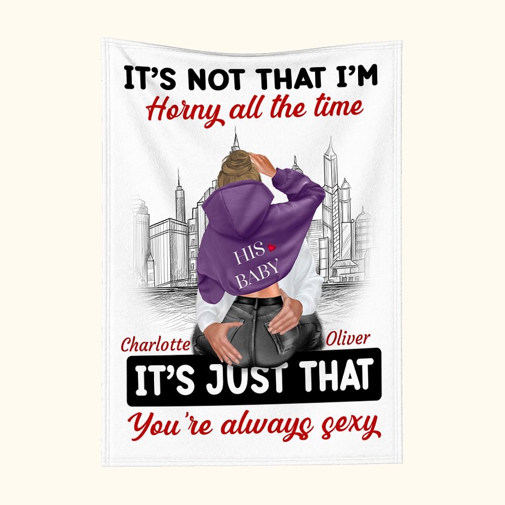 Onze deken heeft een omhelzend paar als ontwerpelement, met een drukke stad als achtergrond en de tekst "Het is niet dat ik altijd geil ben, het is gewoon dat jij altijd sexy bent" om het algehele ontwerp meer emotionele lading te geven. De deken zelf symboliseert warmte, terwijl het ontwerp van de minnaar het een meer gepassioneerde en romantische betekenis geeft, waardoor deze deken een echte noodzaak is voor koppels.