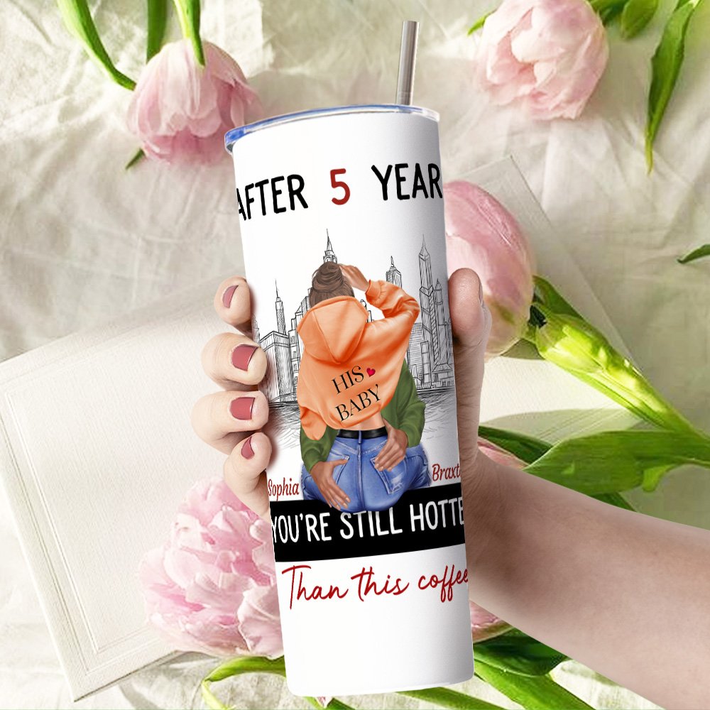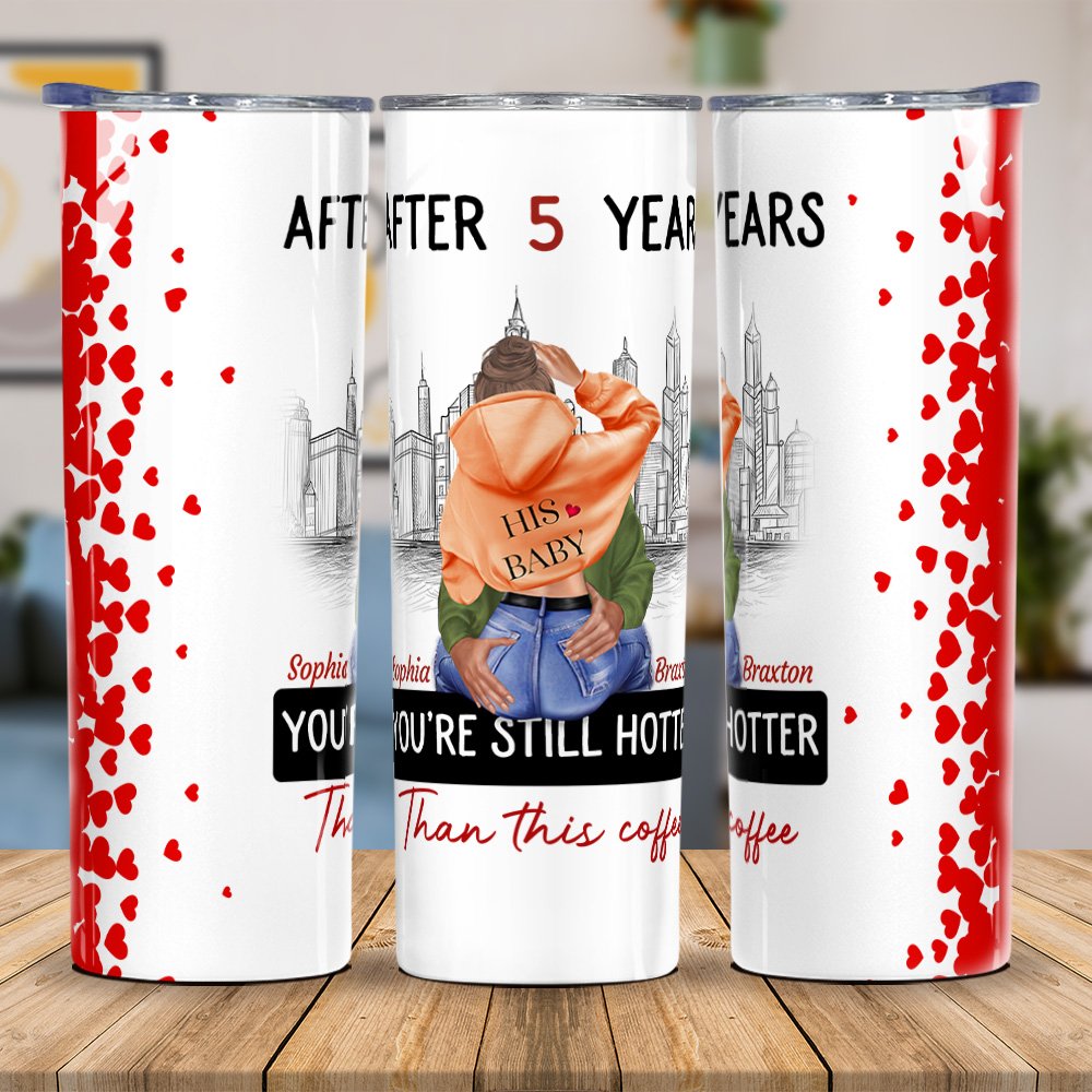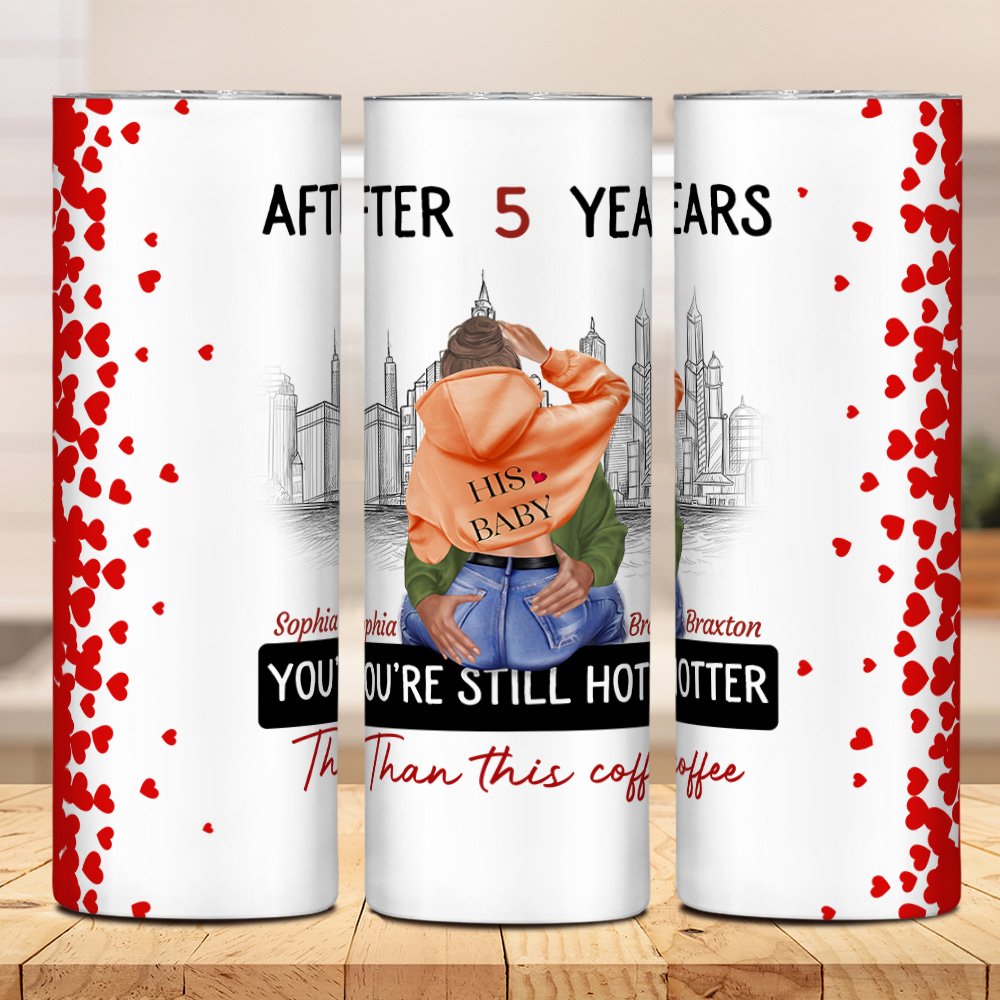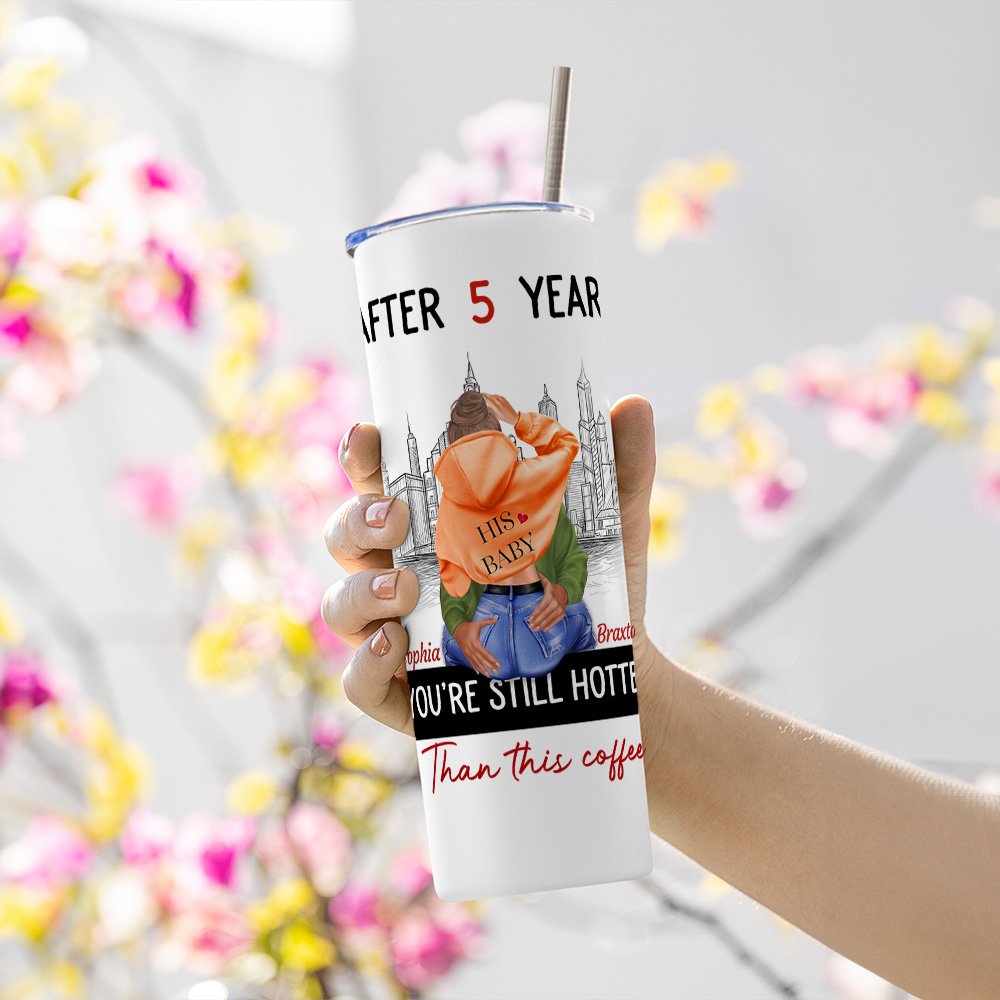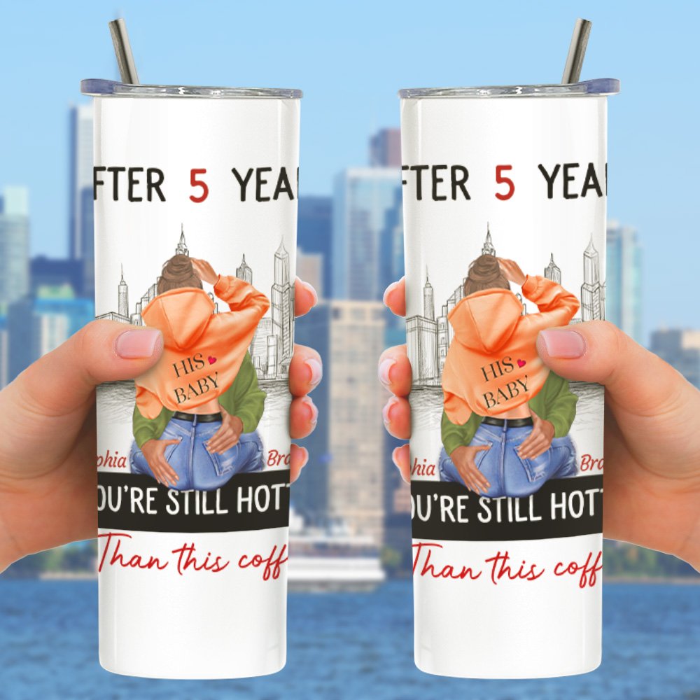 Gepersonaliseerde Busy City You Are Still Hotter Than This Coffee 20oz Skinny Tumbler Valentijnscadeau voor koppel
