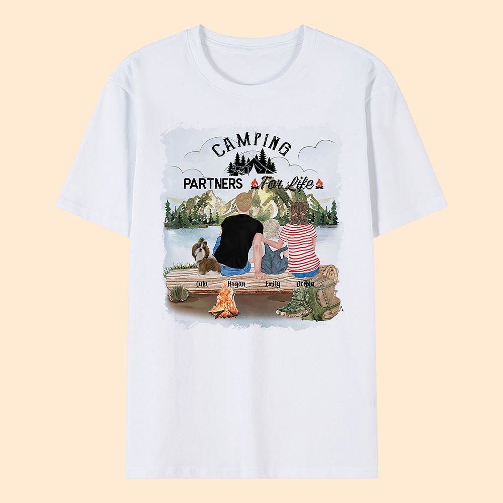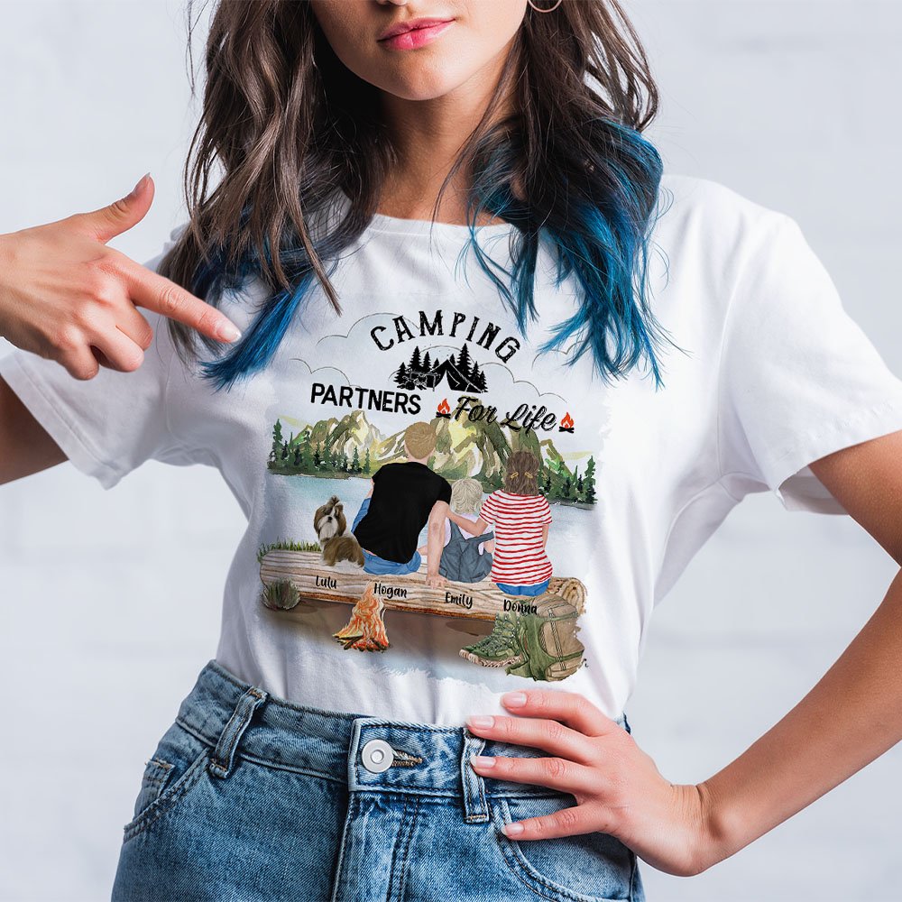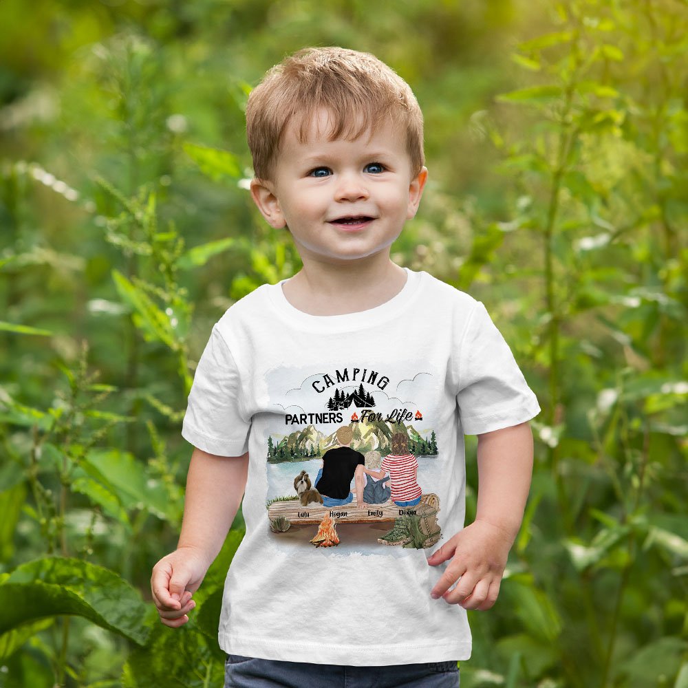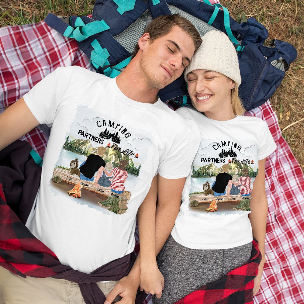 Gepersonaliseerd Camping Partners For Life T-shirt voor volwassenen en kinderen Verjaardag Verjaardagscadeau voor familie