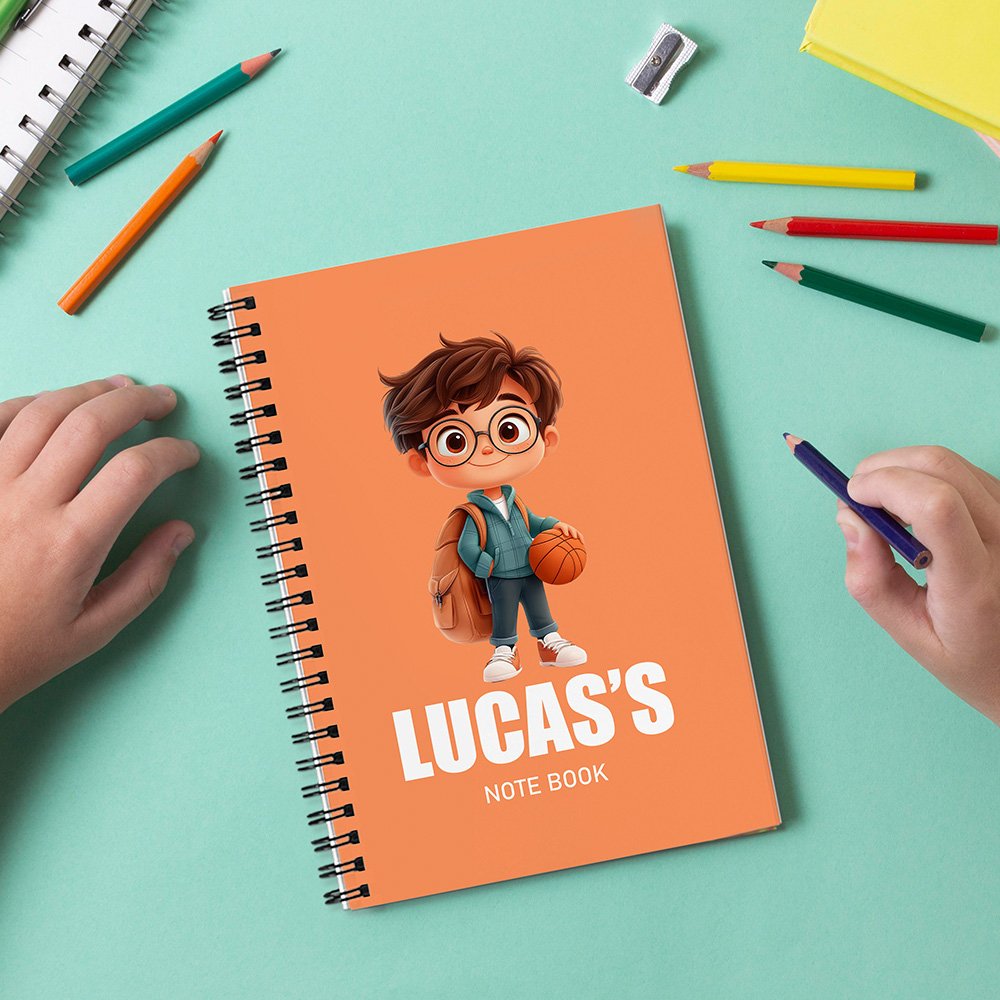 Dit A5-spiraalnotitieboek heeft schattige stripfiguren, waardoor het een spannend accessoire voor kinderen is. Personaliseer het met de naam van je kind en een tekst naar keuze voor een uniek tintje in hun dagelijkse activiteiten.