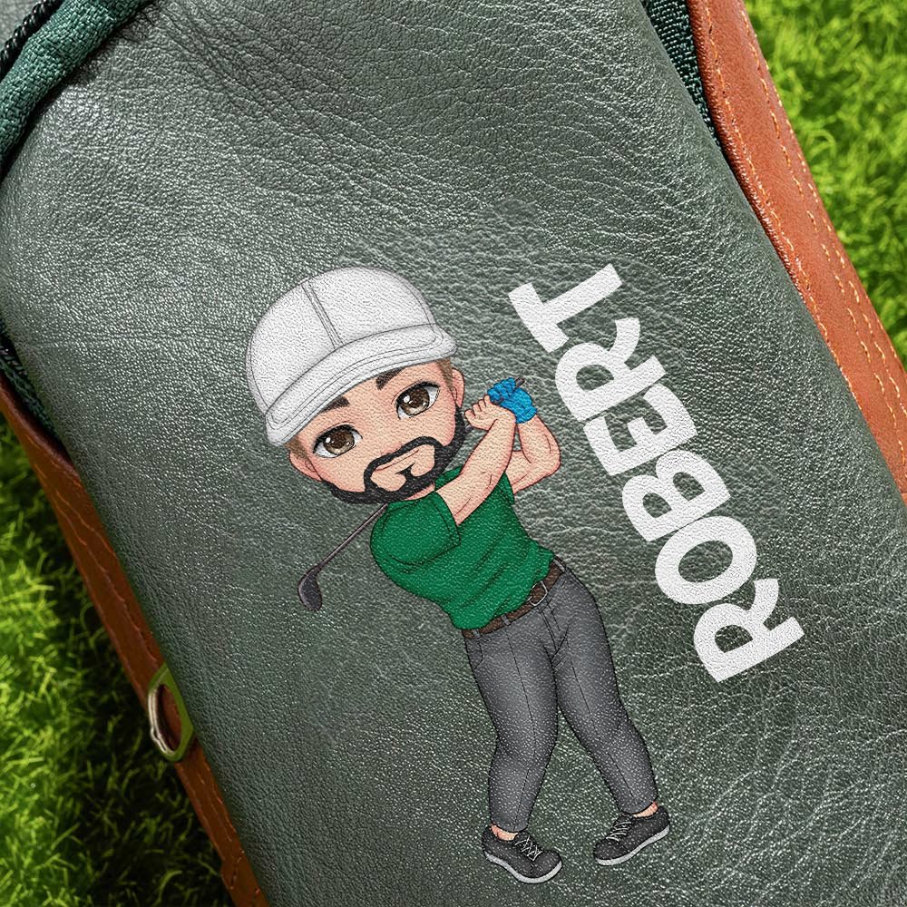 Elke golftas is uniek ontworpen met een charmant cartoonfiguurtje van een golfman, gepersonaliseerd met de naam van de ontvanger voor een speciaal tintje. Het grillige ontwerp voegt een leuk element toe aan elk golfuitje en benadrukt de individualiteit van de golfer.