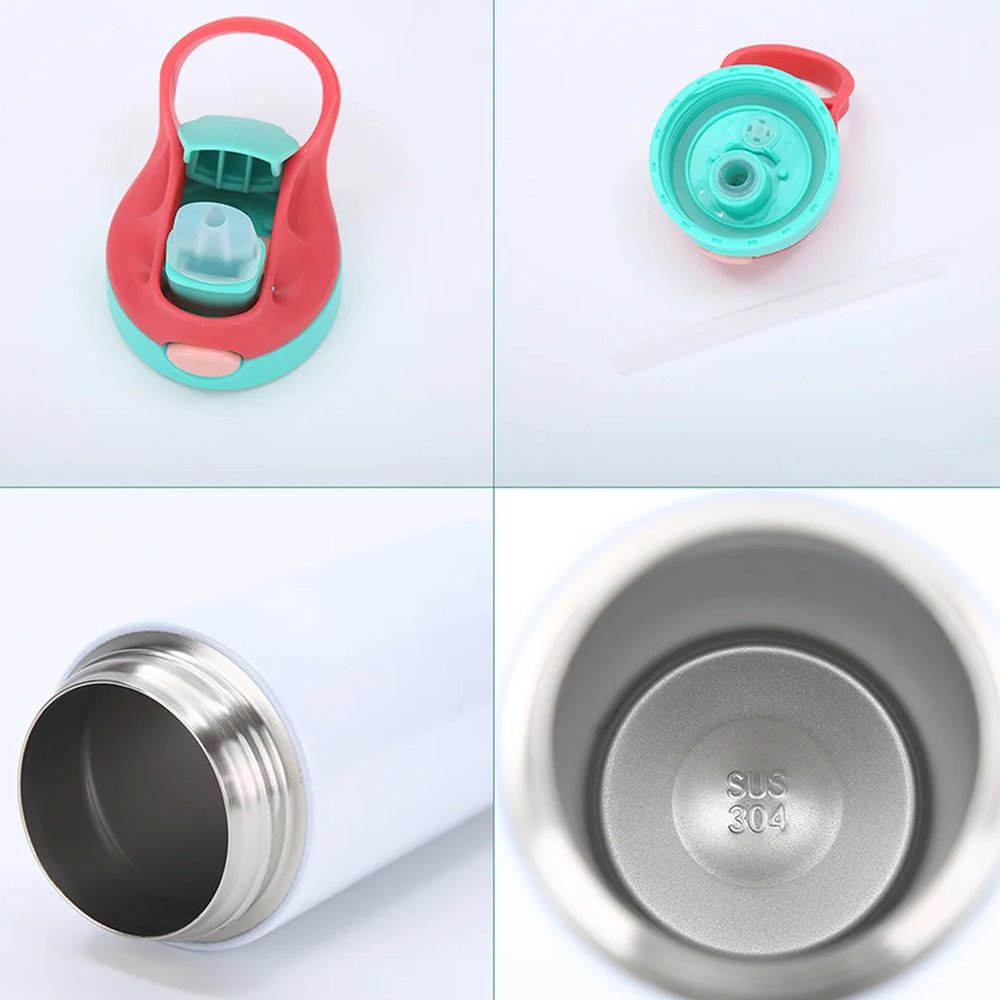 Gemaakt van dubbellaags roestvrij staal, de binnenlaag is 304 voedselveilig roestvrij staal, terwijl de buitenlaag 201 roestvrij staal is, wat zorgt voor een milieuvriendelijk en duurzaam product dat voldoet aan de normen voor voedselveiligheid. Deze waterfles biedt uitstekende isolatieprestaties, waardoor drankjes op hun best blijven, of het nu warme chocolademelk of gekoeld sap is. Het siliconen rietje maakt drinken gemakkelijk, zodat de kleintjes niet morsen terwijl ze ervan genieten.