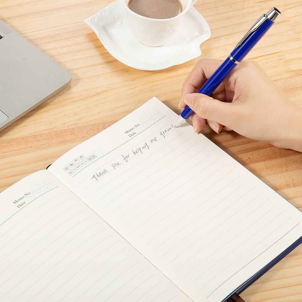 Gemaakt van hoogwaardig PU leer, voelt het delicaat, slijtvast en duurzaam aan, en kan het zijn originele textuur en uiterlijk behouden, zelfs na langdurig gebruik. De binnenpagina's zijn gemaakt van papier van hoge kwaliteit, dat soepel schrijft en niet gemakkelijk inkt opneemt. Het notitieboek heeft ook een lint als bladwijzer, waarmee je gemakkelijk de schrijfpositie kunt markeren. De pen is gemaakt van aluminium, zorgvuldig gepolijst, voelt prettig aan en schrijft soepel. Het is de perfecte metgezel voor de schrijfervaring.