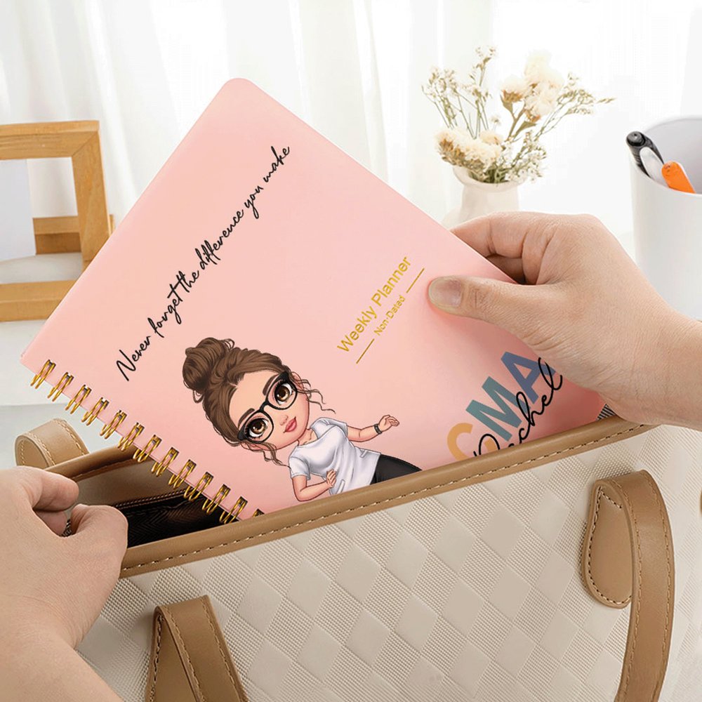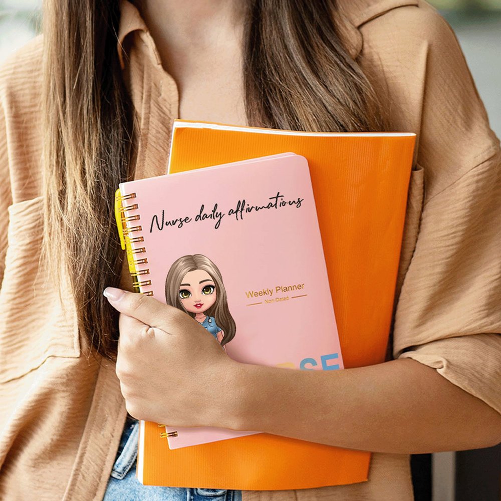 Gepersonaliseerd Cartoon Dokter Verpleegster Karakter Weekplanner Spiraal A5 Notitieboekje met Naam en Titel Verpleegkundige Week Waardering Gift voor Medisch Personeel