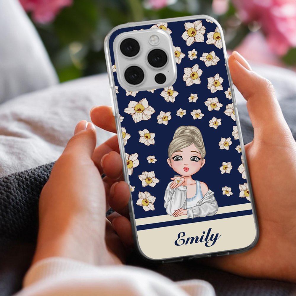 Dit telefoonhoesje heeft een betoverend ontwerp rond geboortebloemen en een cartoonachtig meisje. Of het nu de zachte roos, het levendige madeliefje of de elegante lelie is, elke bloem brengt een uniek verhaal en emotie over en creëert een romantische sfeer. Je kunt het uiterlijk van het meisje aanpassen, het type bloem kiezen, de kleur van het hoesje kiezen en zelfs je naam toevoegen voor een uniek fashion statement.