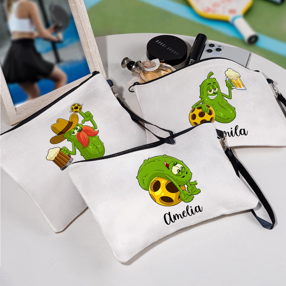 Het ontwerp van deze cosmetische tas is eenvoudig en charmant en bestaat uit zes leuke pickleball-cartoons en pickleball-ontwerpen die je kunt personaliseren en een naam kunt geven om hem nog specialer te maken. Je kunt er je favoriete cartoon-pickleballpatroon op maken. De cosmetische tas kan ook bedrukt worden met je naam om hem nog persoonlijker te maken.